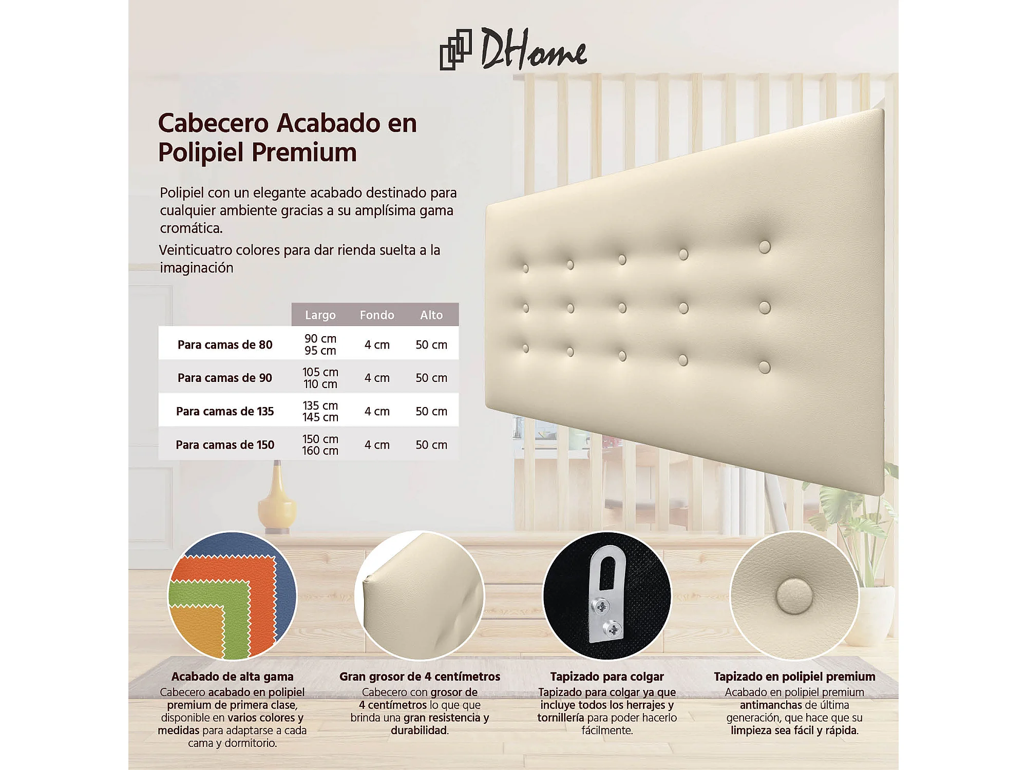 DHOME Tête de Lit en Similicuir avec 3 Rangées de Boutons Tête de Lit Rembourrée de Luxe (Vanille, 105cm)