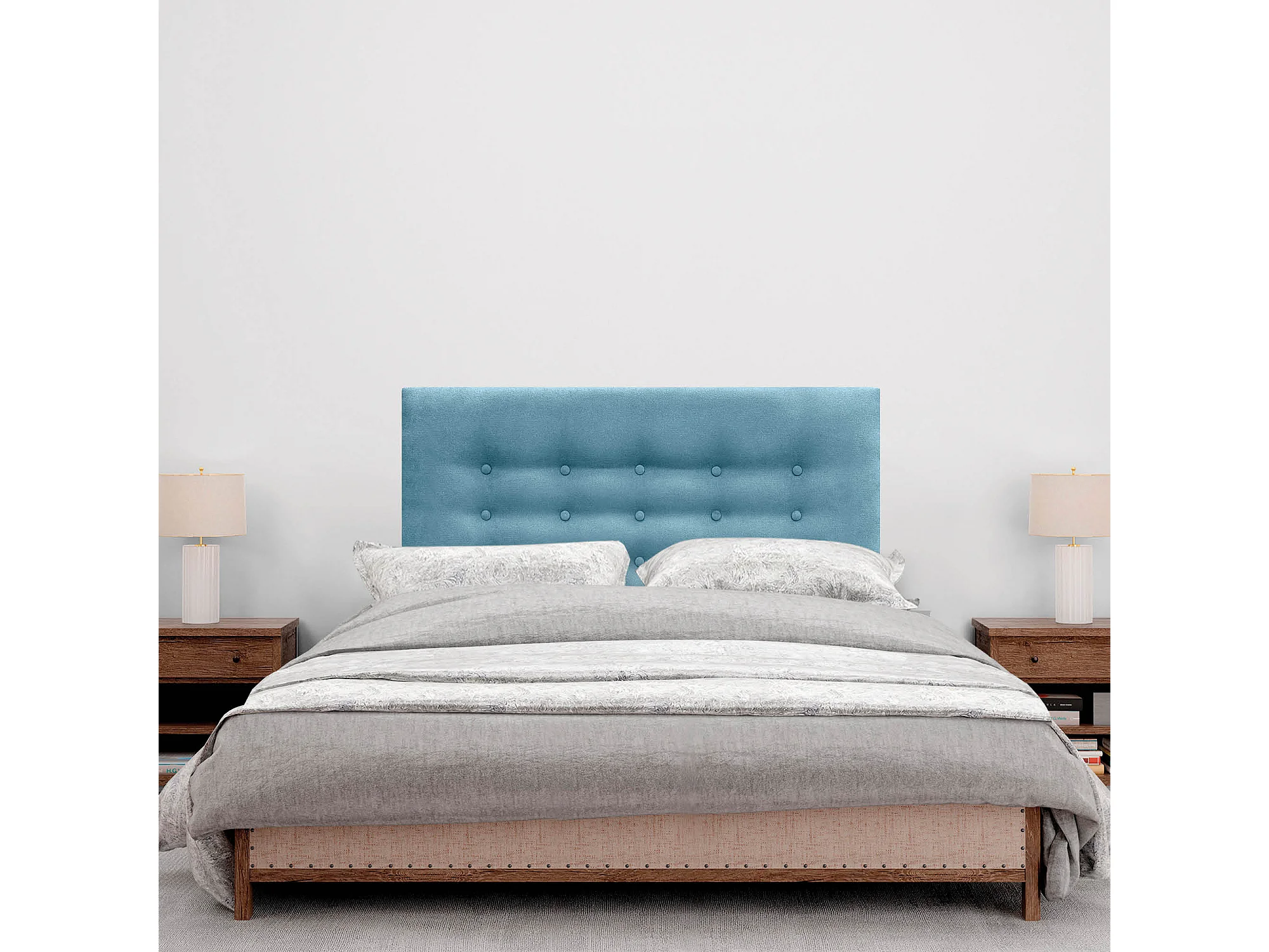 DHOME Tête de Lit en Tissu ACUALINE avec 3 Rangées de Boutons Tête de Lit Capitonnée de Luxe (Turquoise, 90cm)