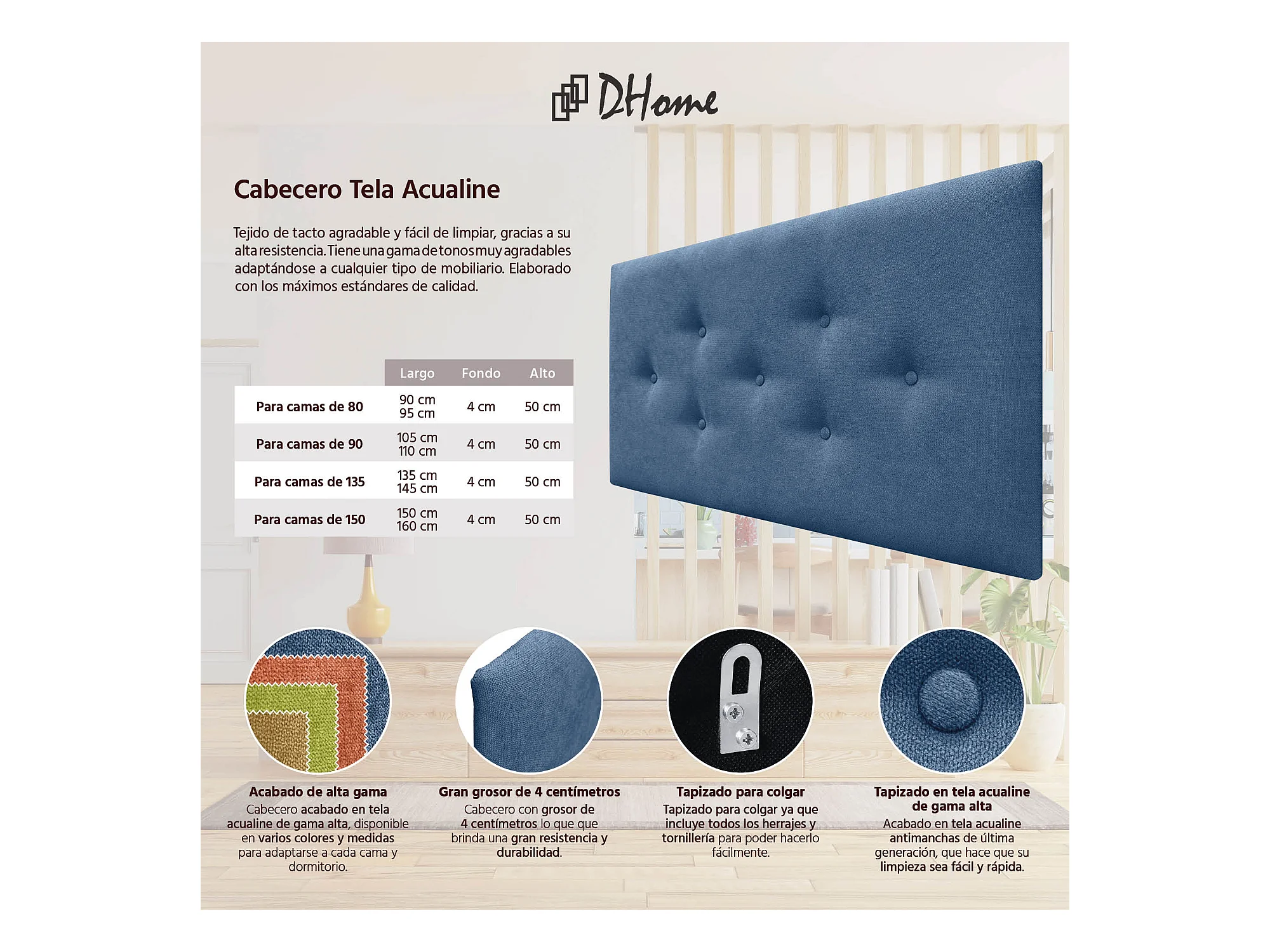 DHOME Tête de lit tapissée en tissu Aqualine composée de panneaux de lit autocollants interchangeables pour chambre de luxe (Bleu, 90 cm)