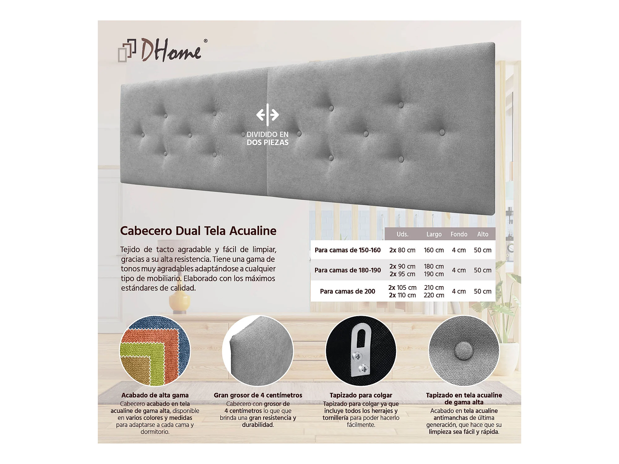 DHOME Tête de lit tapissée en tissu Aqualine composée de panneaux de lit autocollants interchangeables pour chambre de luxe (Gris, 95 cm)