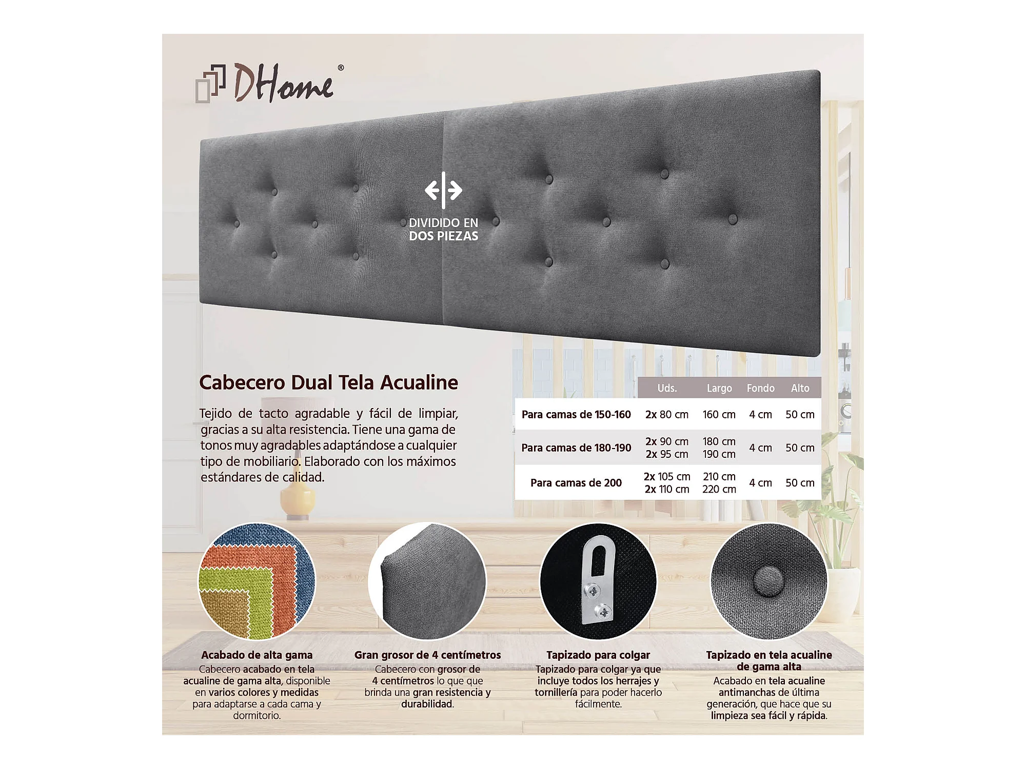 DHOME Tête de Lit en Tissu ACUALINE avec 3 Rangées Entrelacées de Boutons Tête de Lit Capitonnée de Luxe(Gris Ceniza, 220cm (2 pièces))