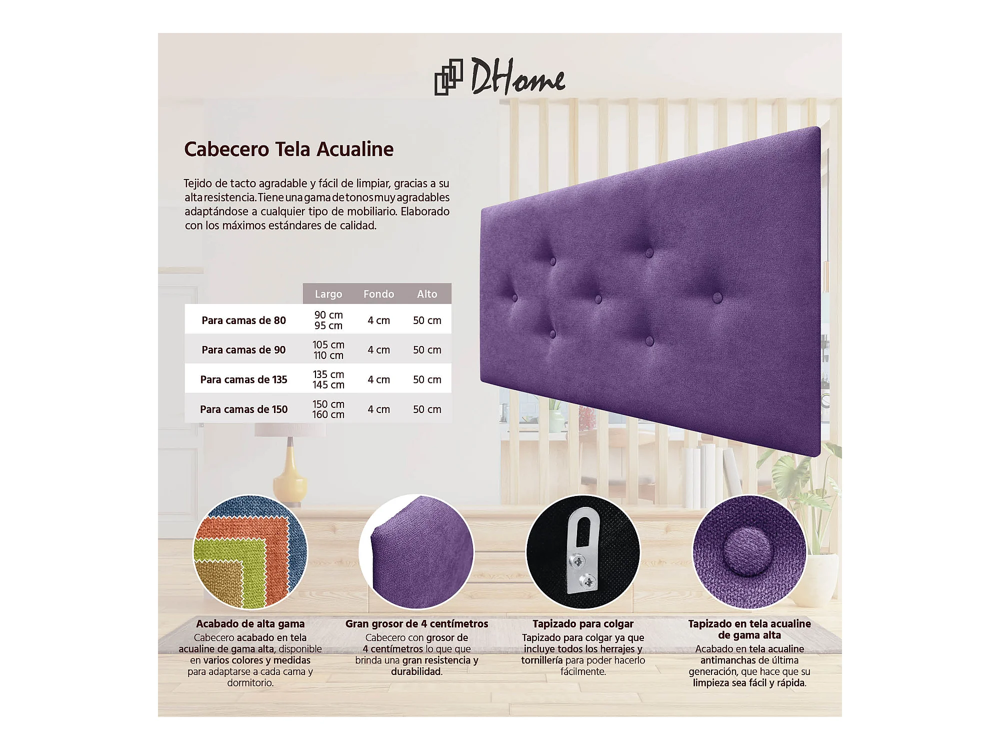 DHOME Tête de lit tapissée en tissu Aqualine composée de panneaux de lit autocollants interchangeables pour chambre de luxe (Lilas, 90 cm)