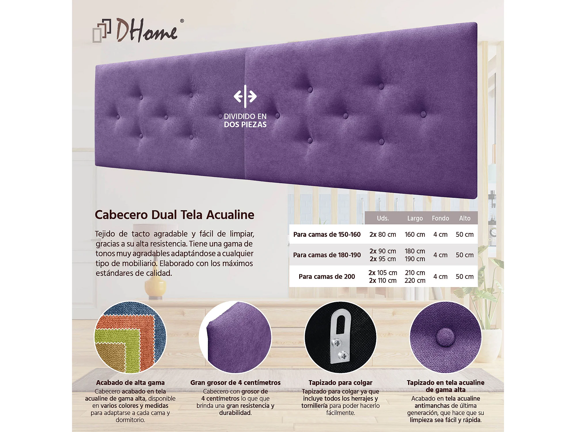 DHOME Tête de Lit en Tissu ACUALINE avec 3 Rangées Entrelacées de Boutons Tête de Lit Capitonnée de Luxe(Lilas, 180cm (2 pièces))