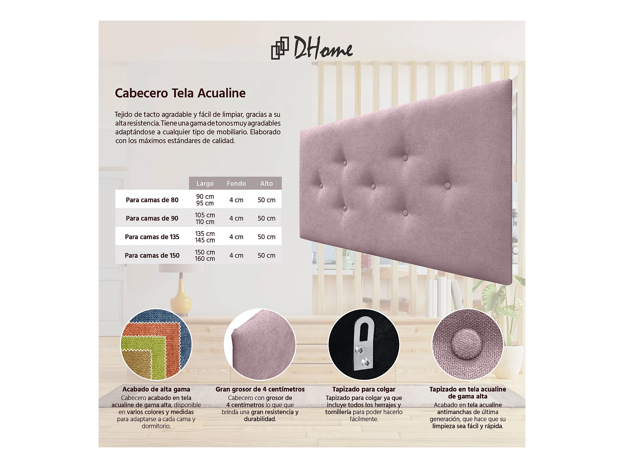 DHOME Tête de Lit en Tissu ACUALINE avec 3 Rangées Entrelacées de Boutons Tête de Lit Capitonnée de Luxe(Rose, 190cm (2 pièces))