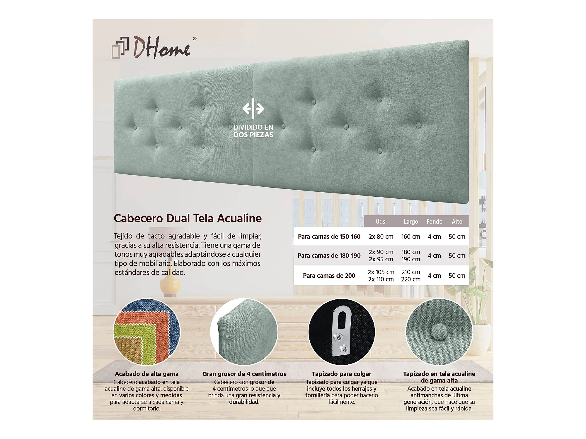 DHOME Tête de Lit en Tissu ACUALINE avec 3 Rangées Entrelacées de Boutons Tête de Lit Capitonnée de Luxe(Vert d’eau, 180cm (2 pièces))