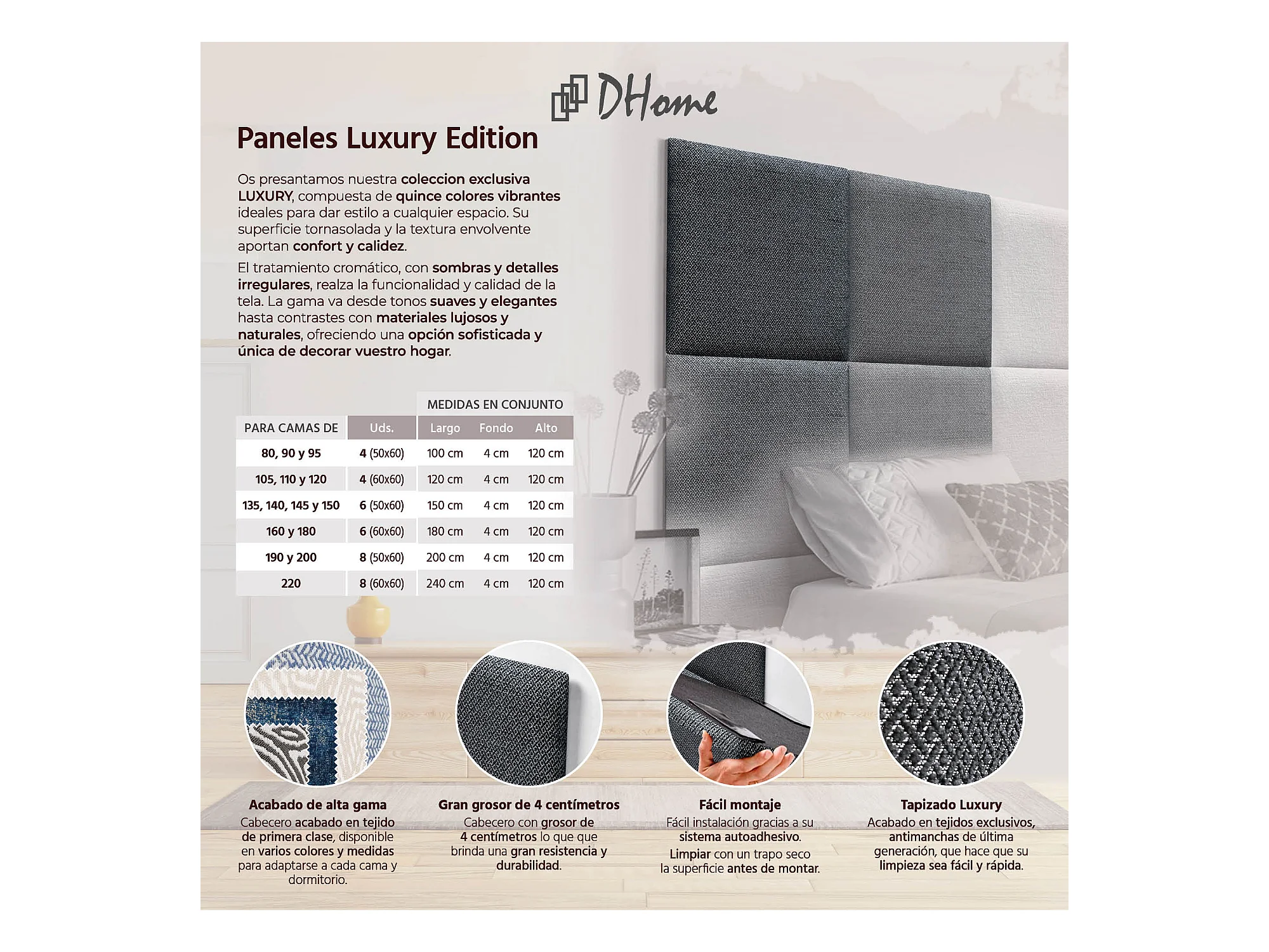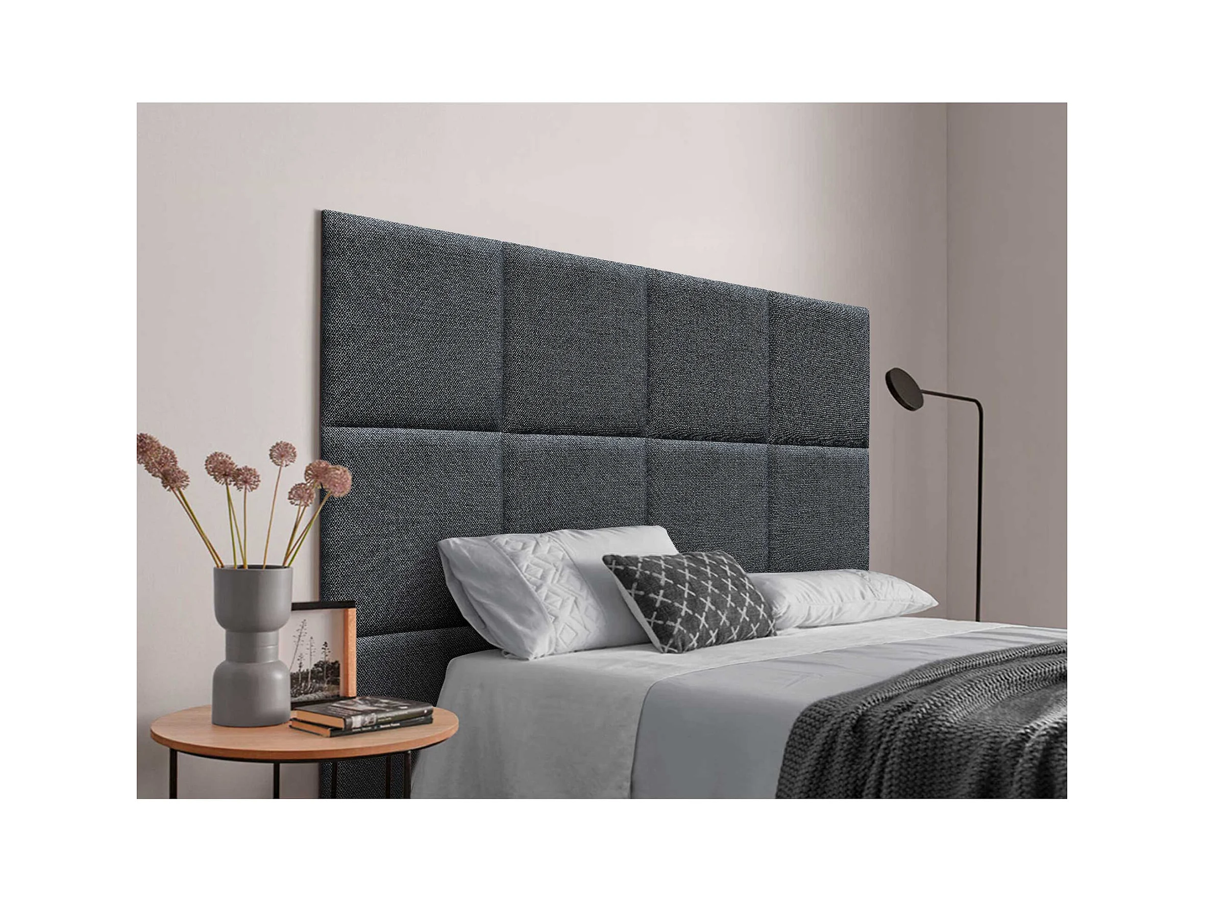 DHOME Tête de Lit Rembourrée Composée de Panneaux Autoadhésifs Interchangeables Série Luxury Edition Lit de Luxe Chambre (Silver Ebony, 160cm)
