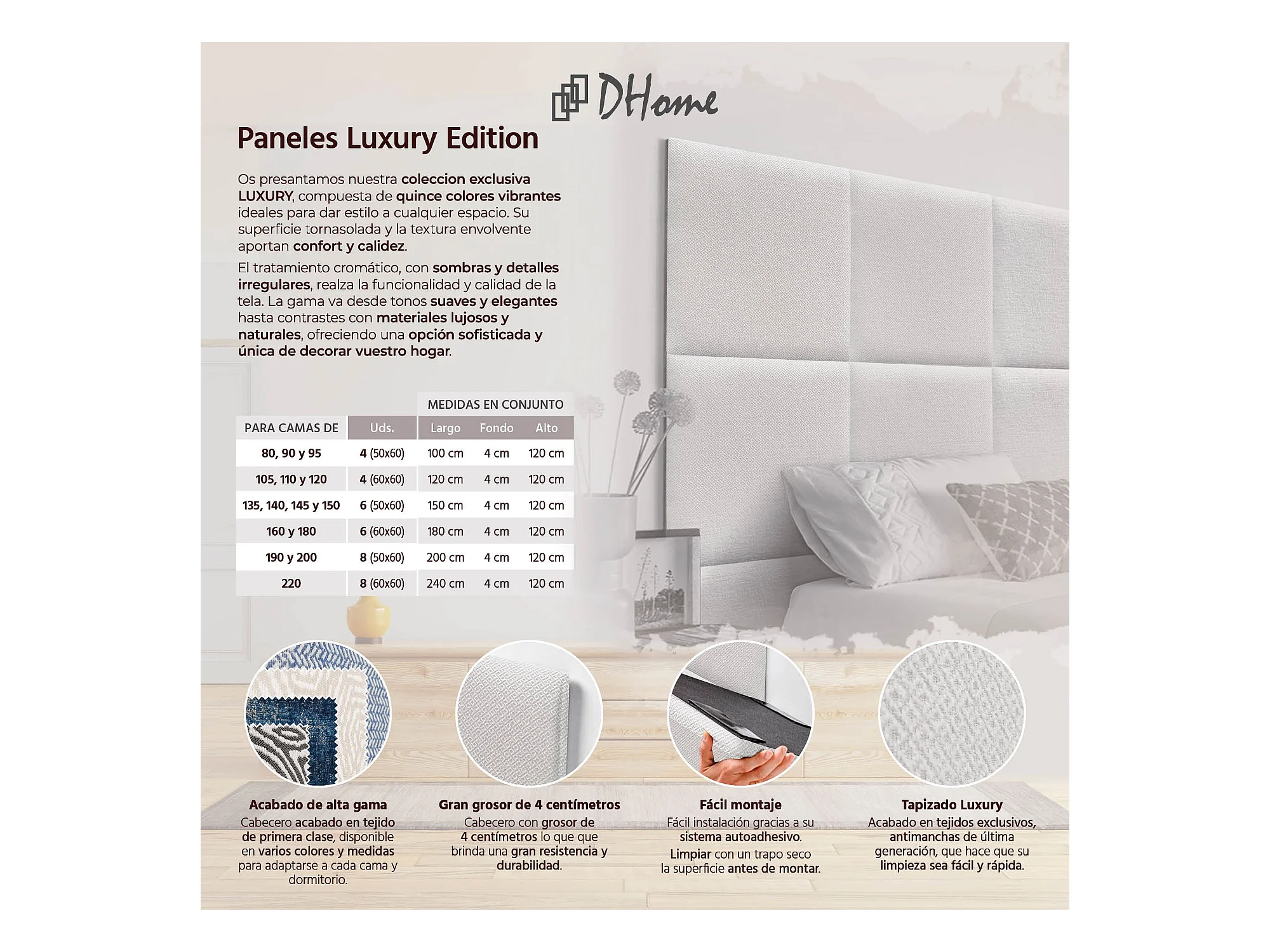 DHOME Tête de Lit Rembourrée Composée de Panneaux Autoadhésifs Interchangeables Série Luxury Edition Lit de Luxe Chambre (Silver Nacar, 90cm)