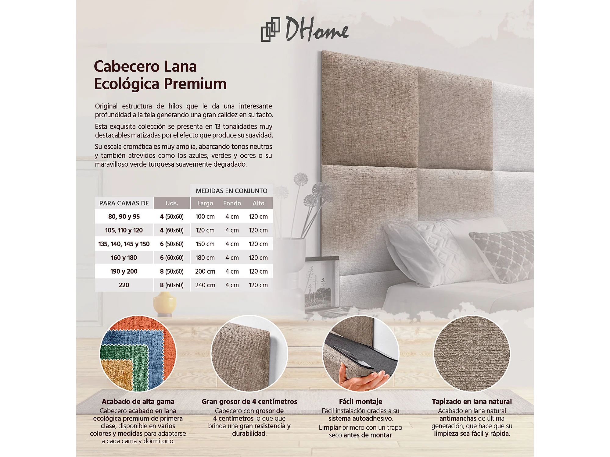 DHOME Tête de lit capitonnée en lin naturel composée de panneaux autocollants interchangeables pour chambre de luxe rembourrée (Terre, 220 cm)