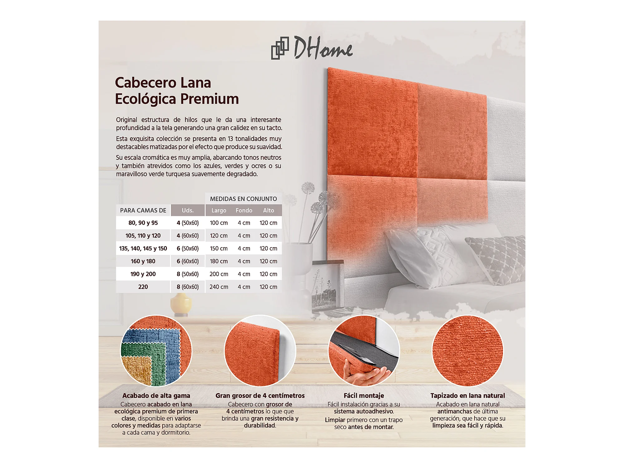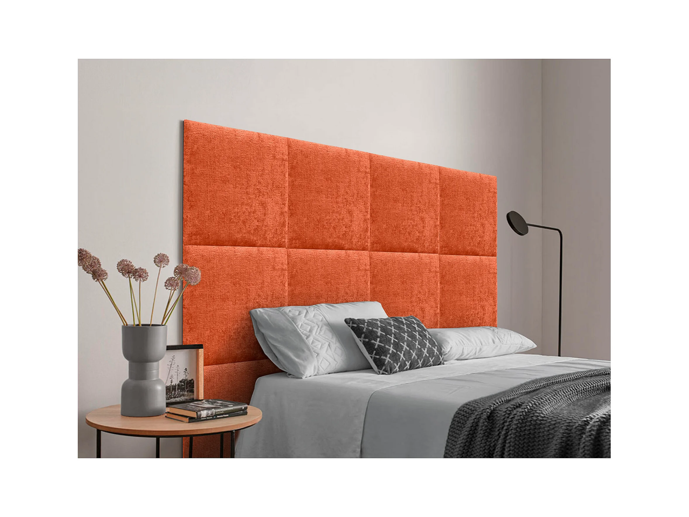 DHOME Tête de Lit Rembourrée en Laine Écologique Composée de Panneaux Autocollants Interchangeables Chambre de Luxe Rembourrée (Orange, 135 cm)