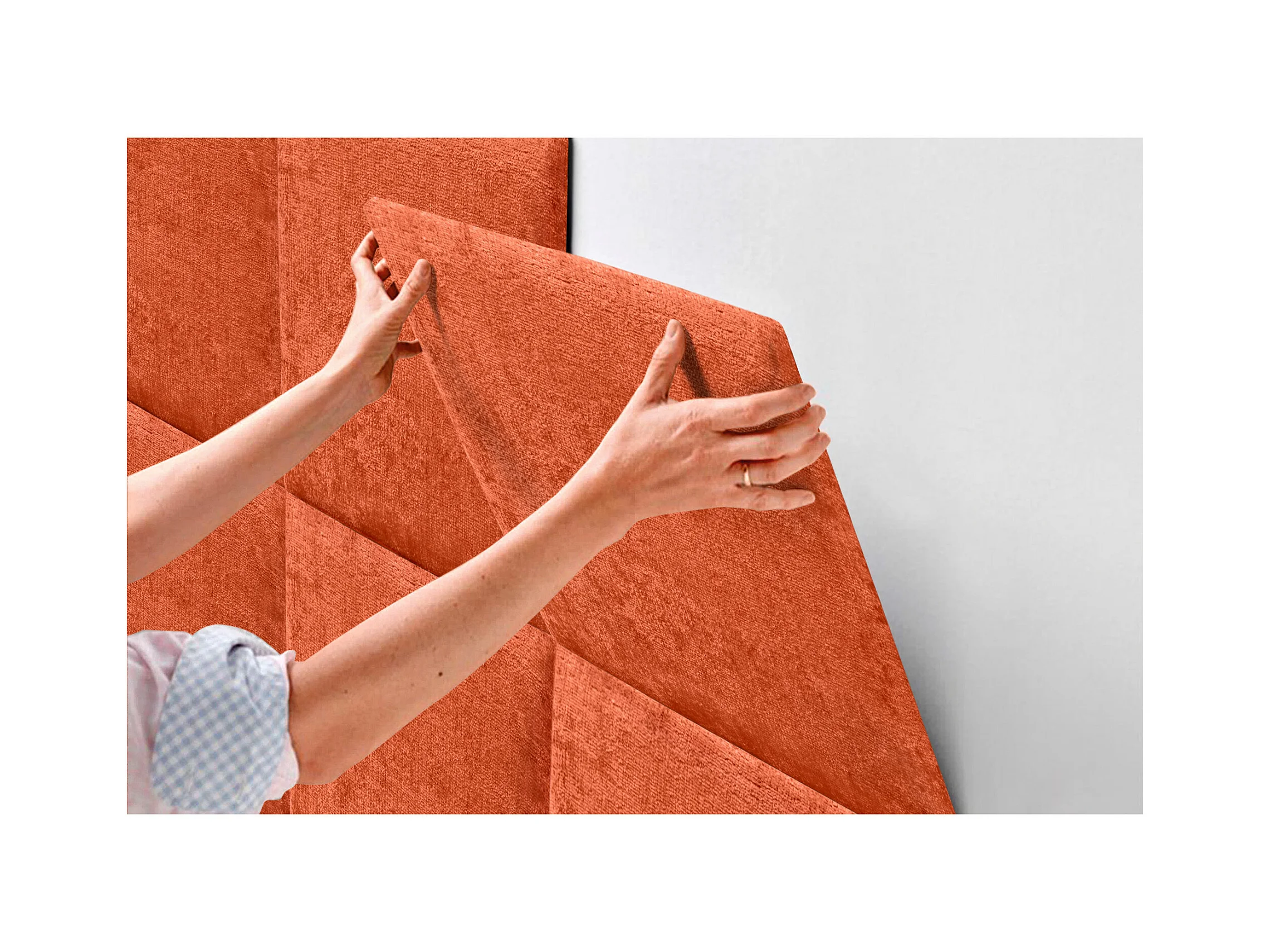 DHOME Tête de lit rembourrée en velours côtelé de qualité supérieure composée de panneaux autocollants interchangeables (orange, 135 cm)