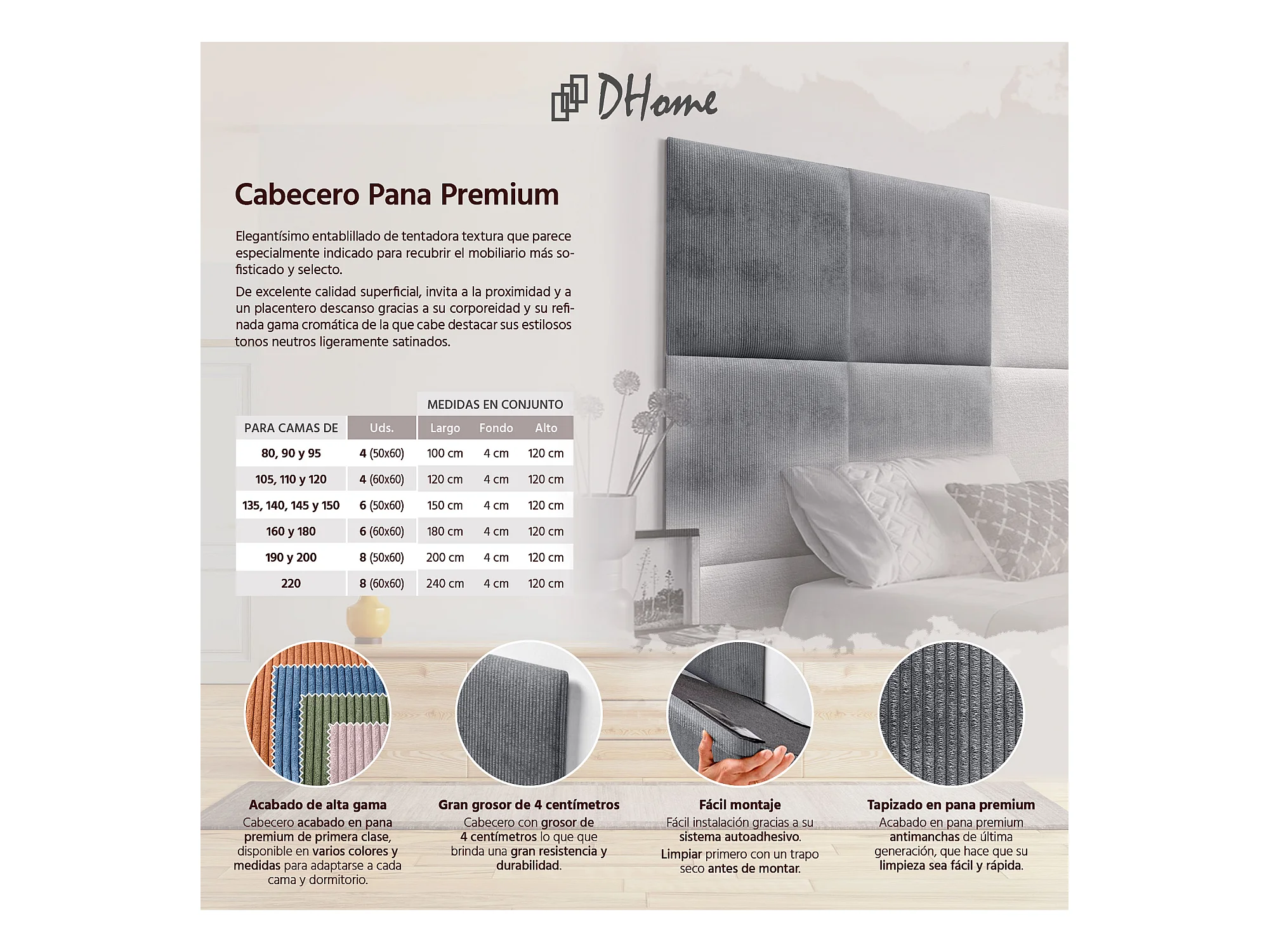 DHOME Tête de lit rembourrée en velours côtelé de qualité supérieure composée de panneaux autocollants interchangeables (gris foncé, 105 cm)