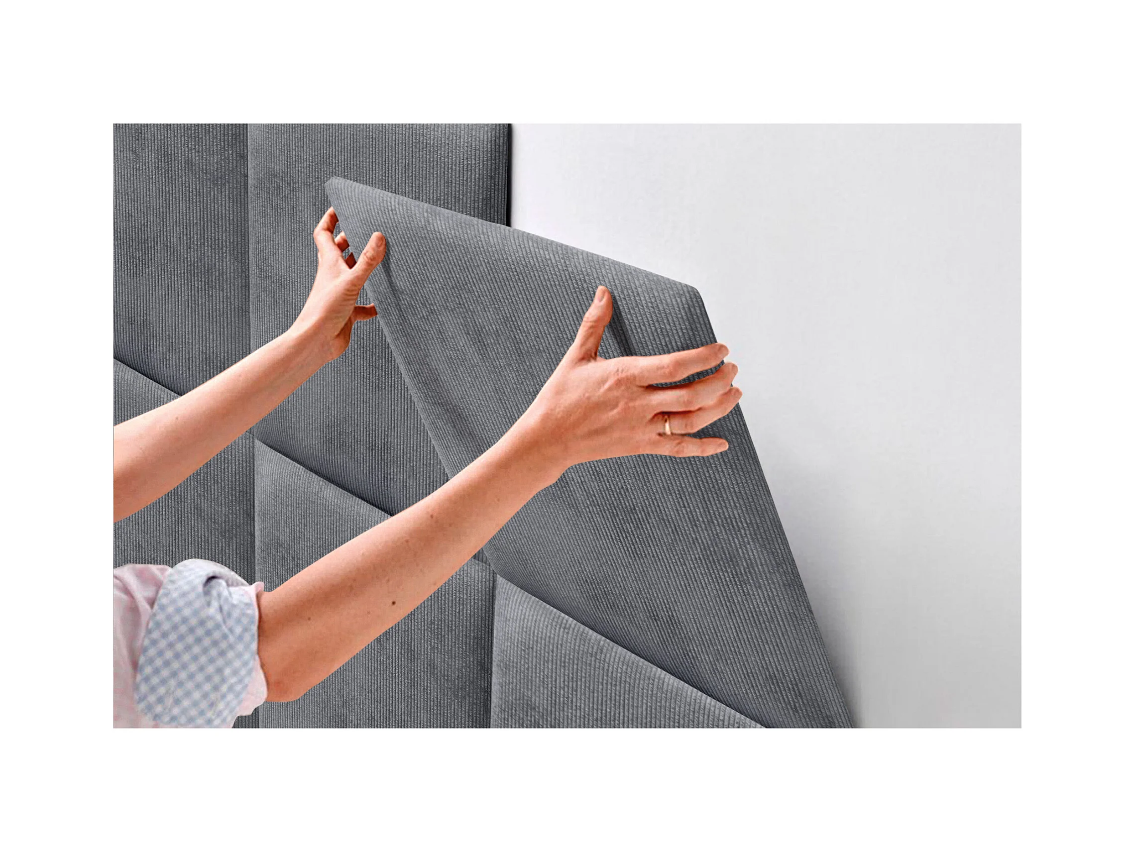 DHOME Tête de lit tapissée en tissu Aqualine composée de panneaux de lit autocollants interchangeables pour chambre de luxe (Gris cendré, 105 cm)