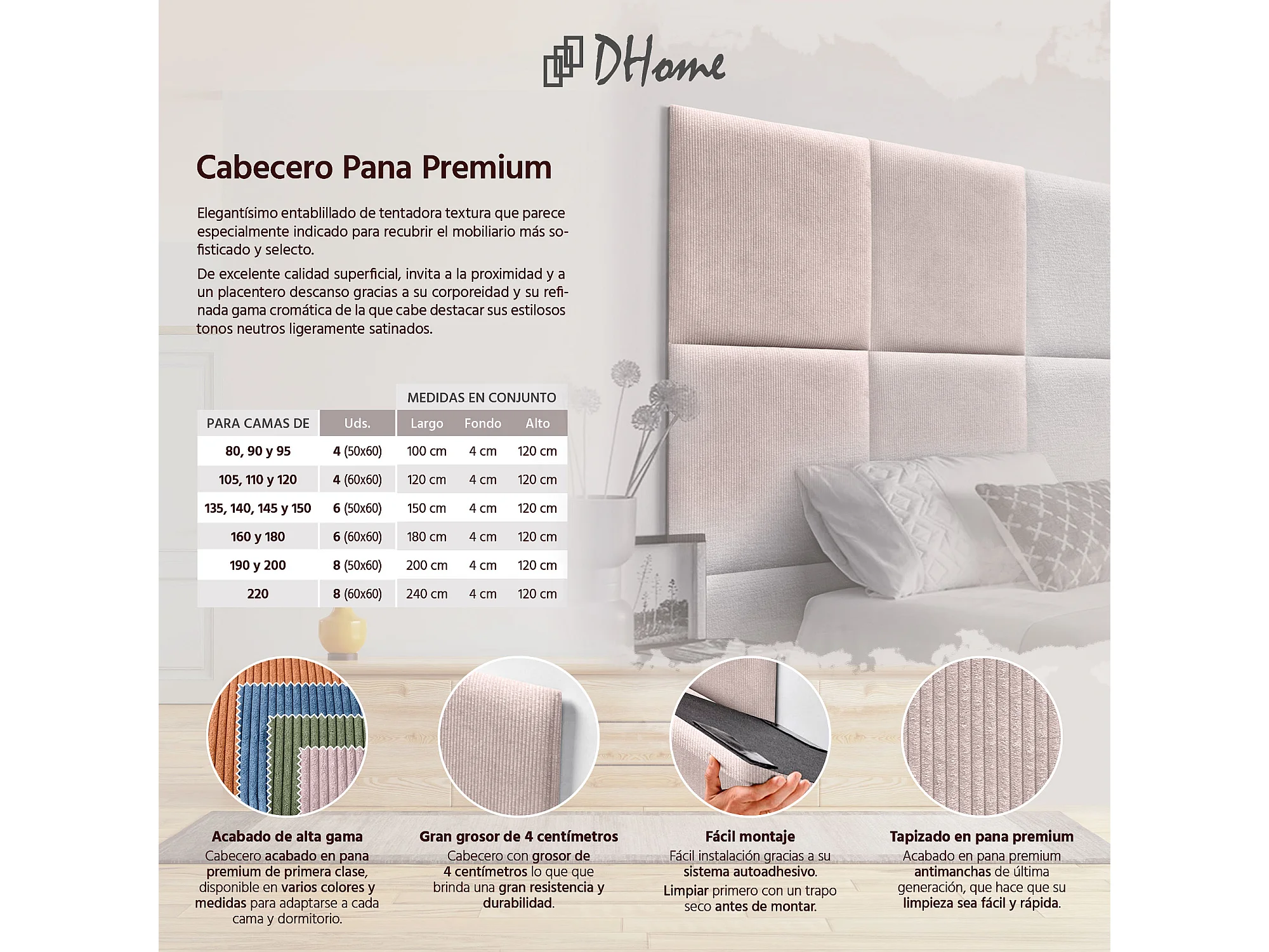 DHOME Tête de lit rembourrée en velours côtelé de qualité supérieure composée de panneaux autocollants interchangeables (rose, 190 cm)