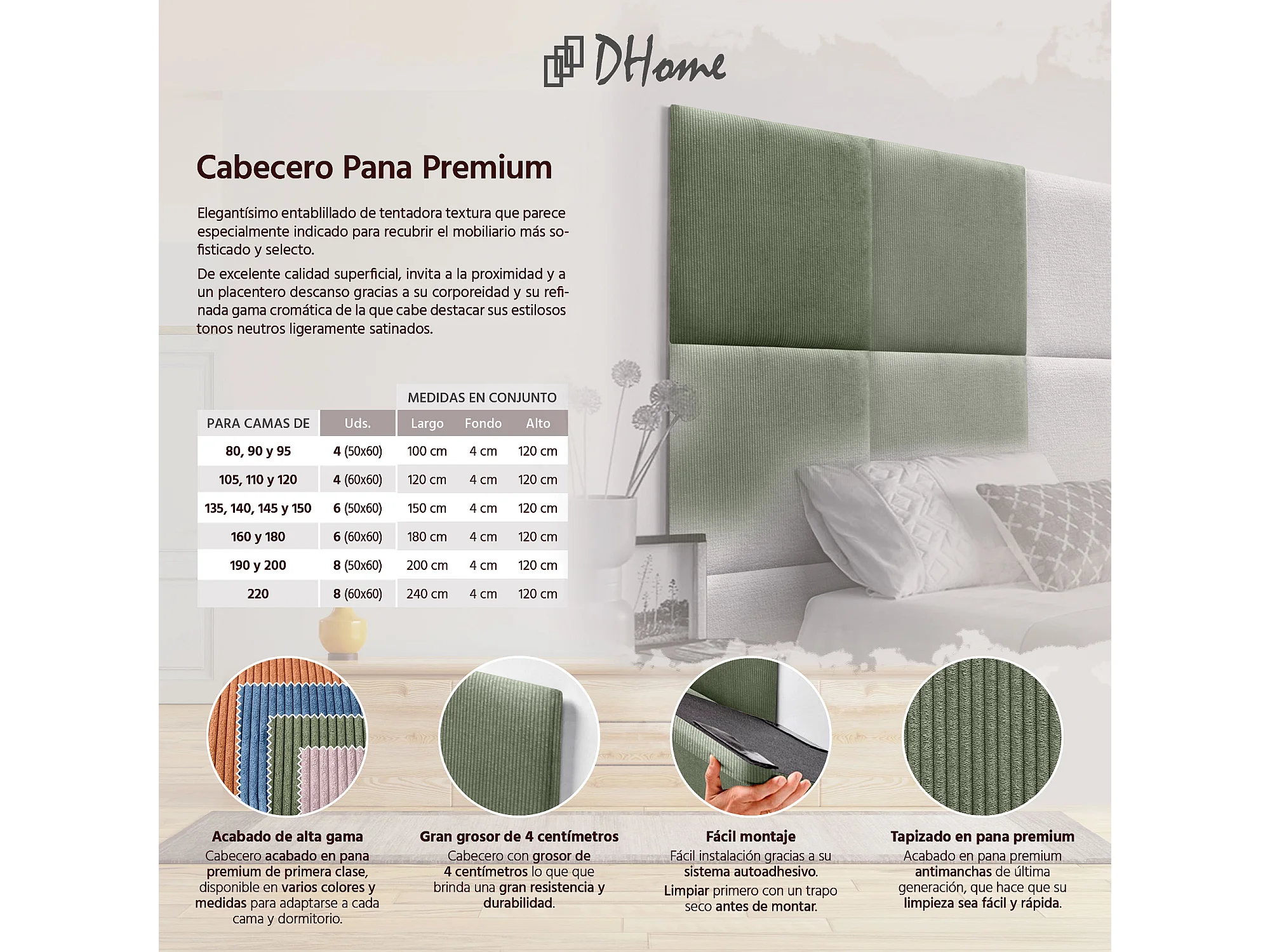 DHOME Tête de lit tapissée en tissu Aqualine composée de panneaux de lit autocollants interchangeables pour chambre de luxe (Pistache, 105 cm)