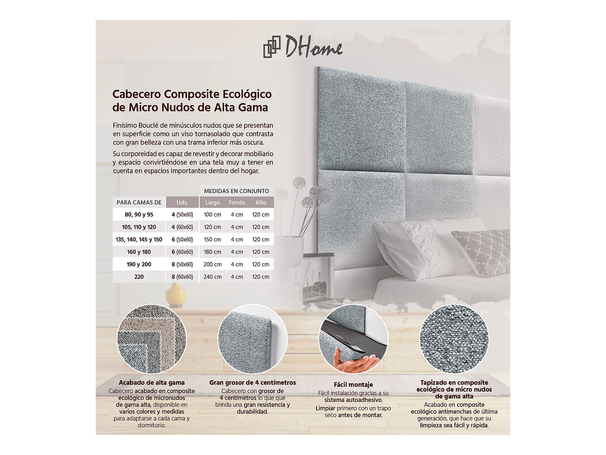 DHOME Tête de lit tapissée en tissu Aqualine composée de panneaux de lit autocollants interchangeables pour chambre de luxe (Gris perle, 150 cm)