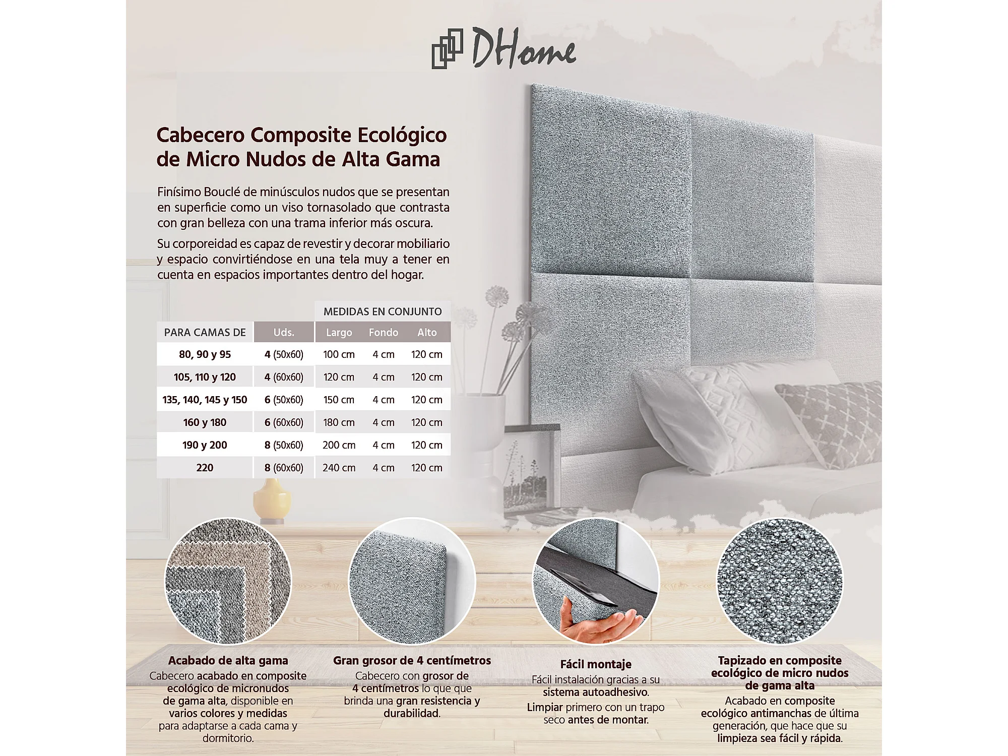 DHOME Tête de lit tapissée en tissu Aqualine composée de panneaux de lit autocollants interchangeables pour chambre de luxe (Gris perle, 80 cm)