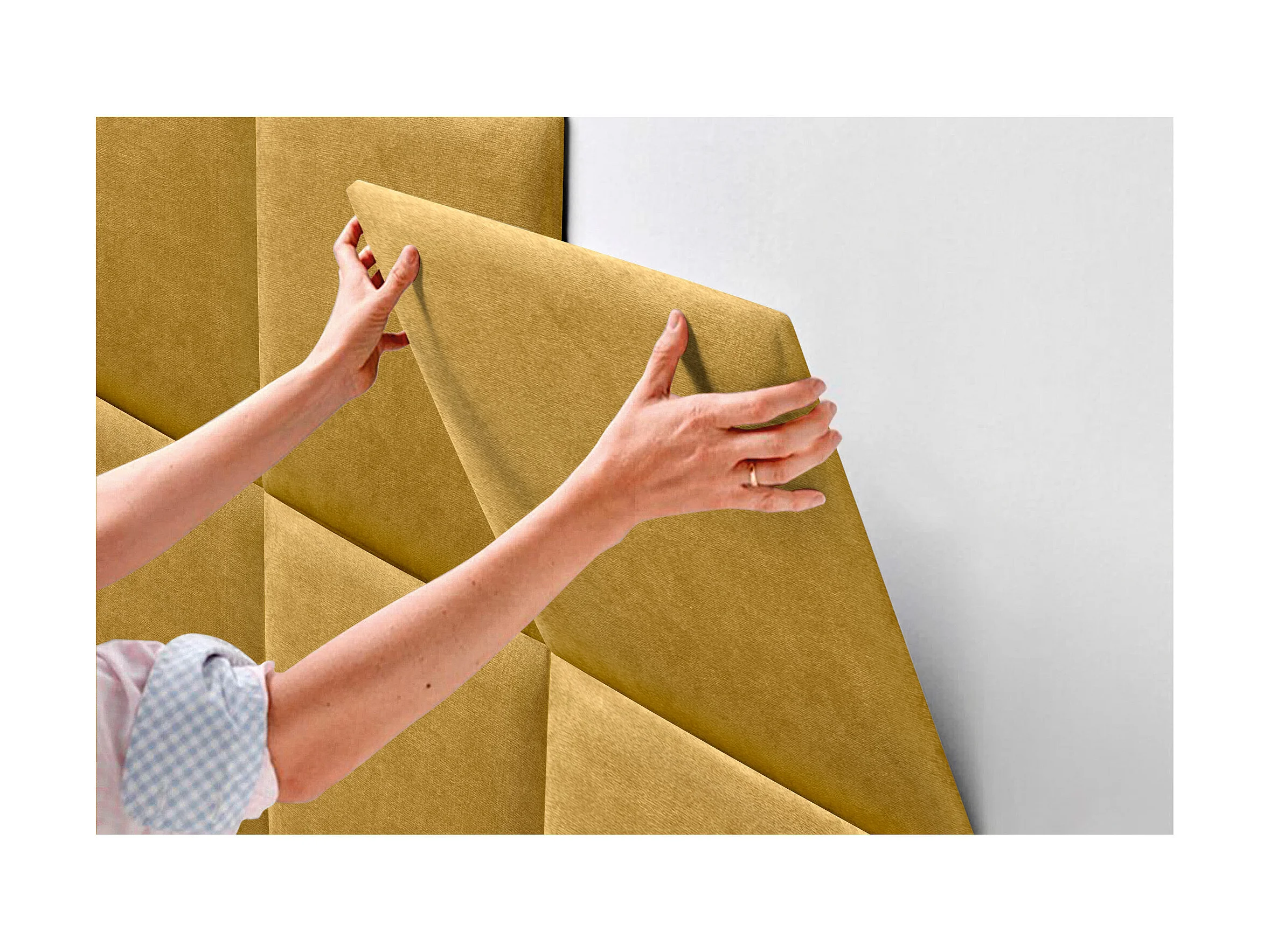 DHOME Tête de lit tapissée en tissu Aqualine composée de panneaux de lit autocollants interchangeables pour chambre de luxe (Moutarde, 95 cm)