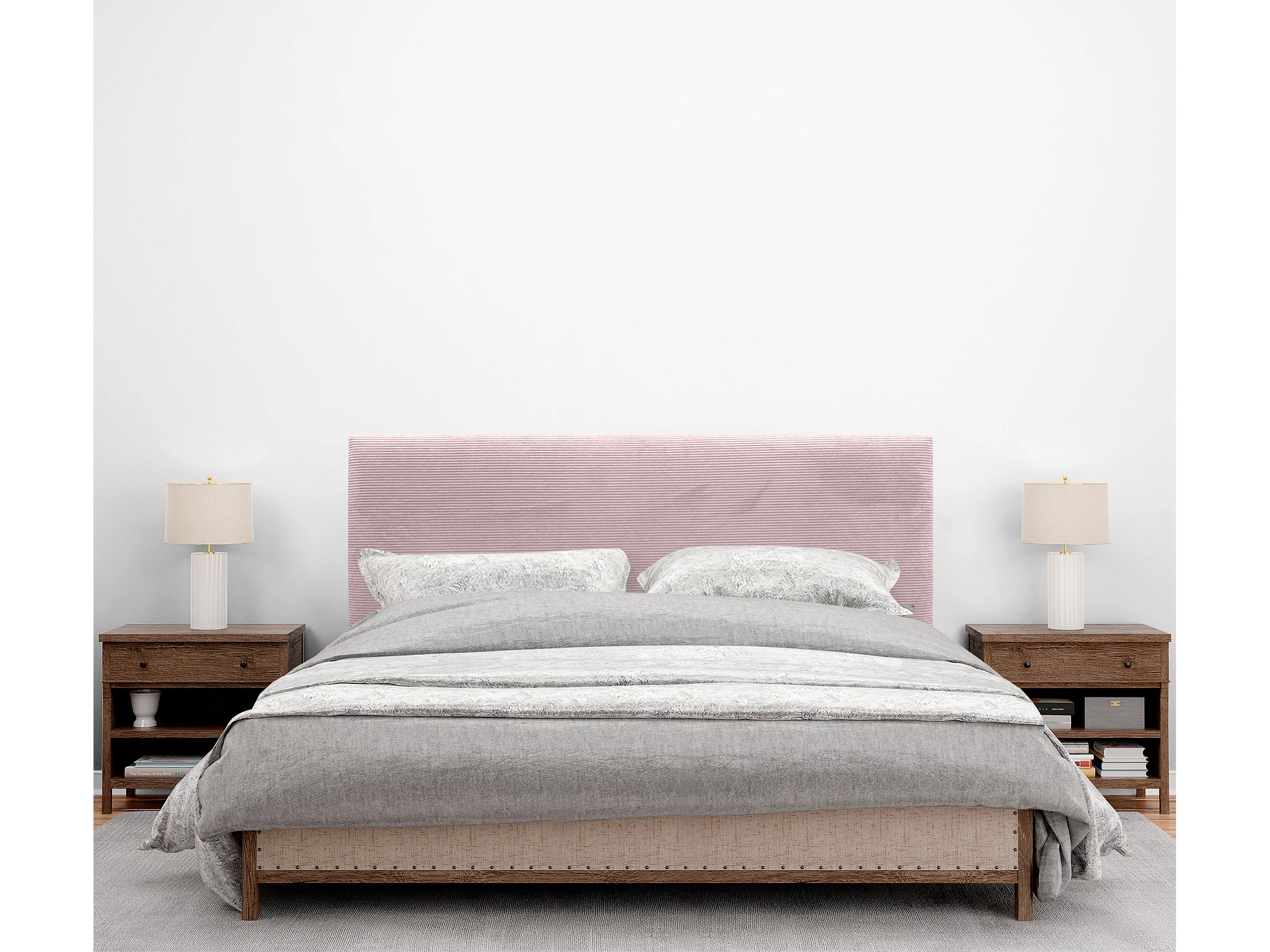 DHOME Tête de Lit Velours Côtelé Uni 135x105 avec Pieds de Lit 120/135/140 - Rose Pâle
