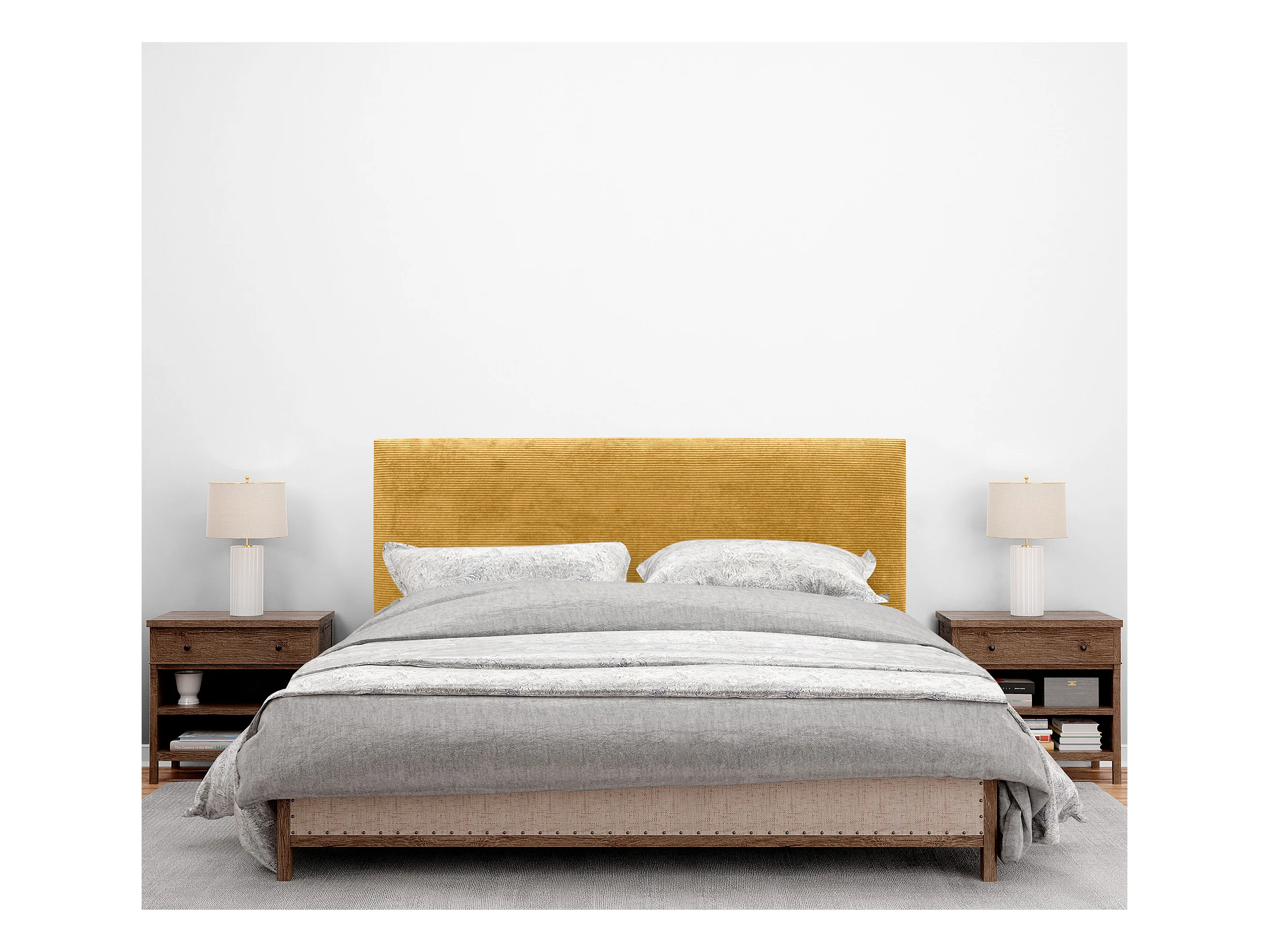 DHOME Tête de lit rembourrée en velours côtelé de qualité supérieure composée de panneaux autocollants interchangeables (moutarde, 150 cm)