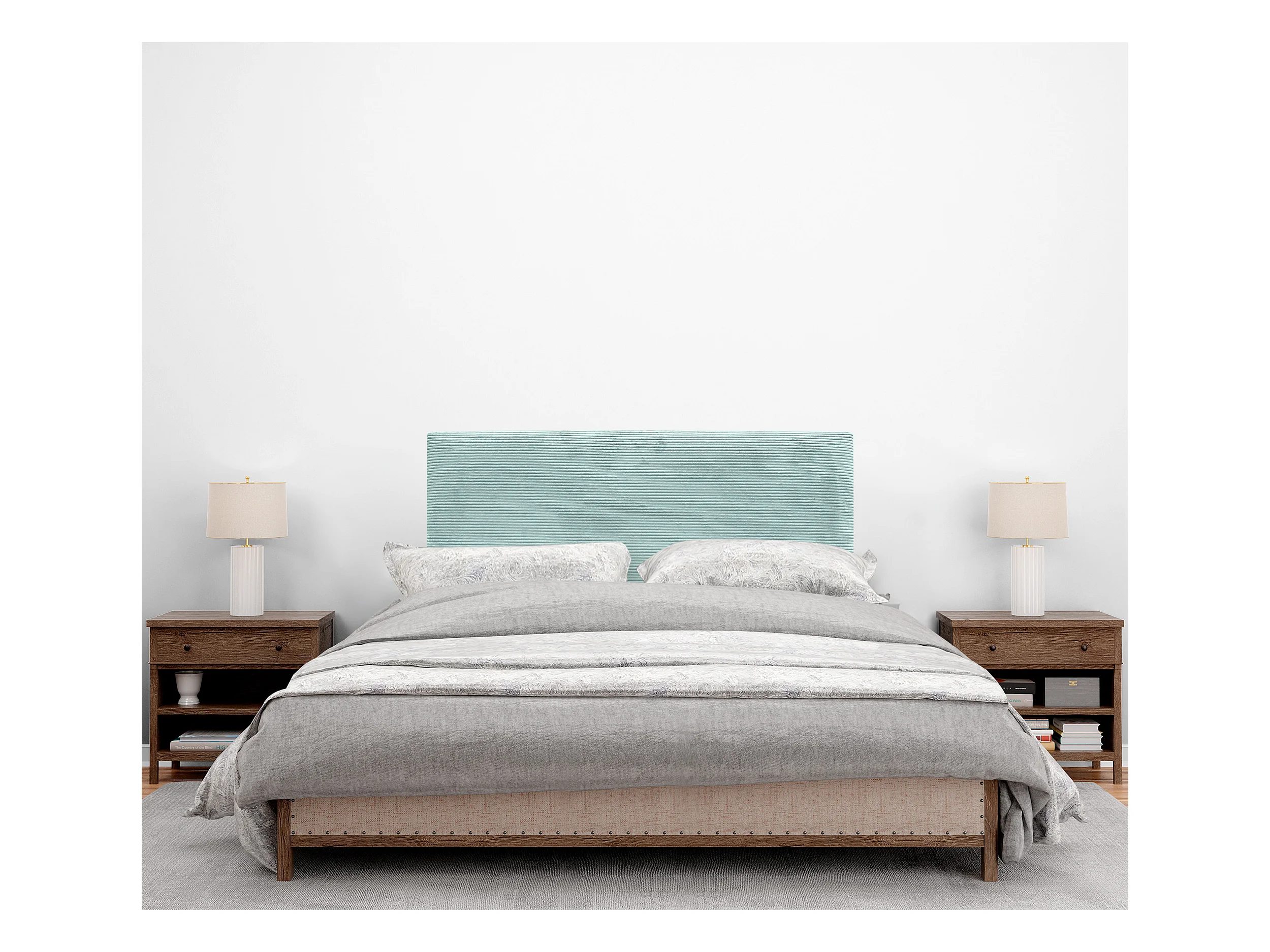 DHOME Tête de Lit Velours Côtelé Uni 160x115 avec Pieds de Lit 150/160 - Vert Aqua
