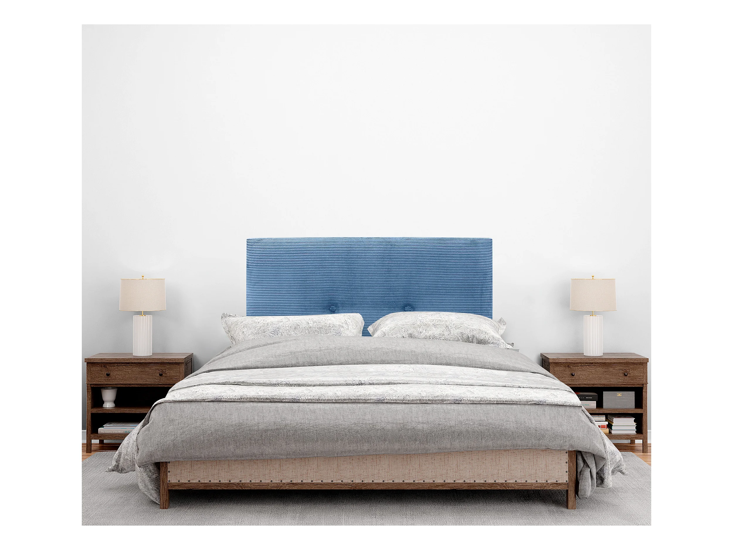 DHOME Tête de lit velours côtelé uni avec boutons 110x105 et pieds de lit 105 - Bleu