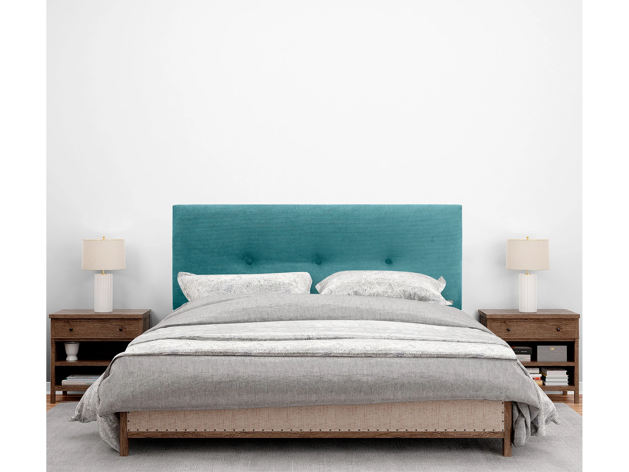 DHOME Tête de Lit Velours Côtelé Uni avec Boutons 135x105 avec Pieds de Lit 120/135/140 - Vert Aqua
