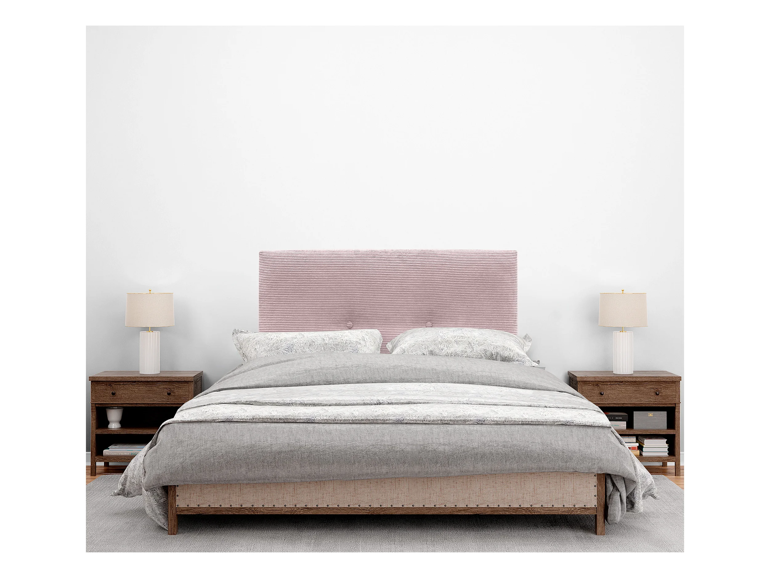 DHOME Tête de Lit Velours Côtelé Uni 90x105 avec Pieds de Lit 80/90 - Rose Pâle