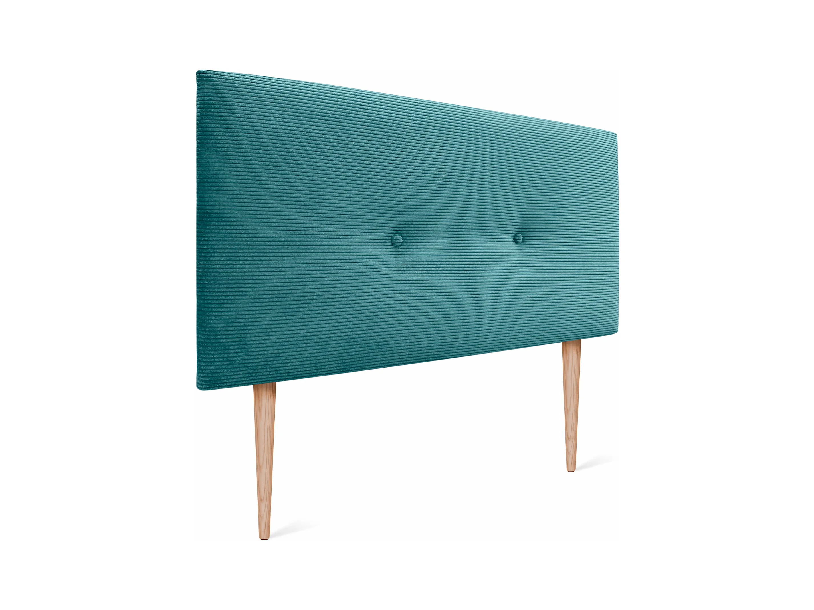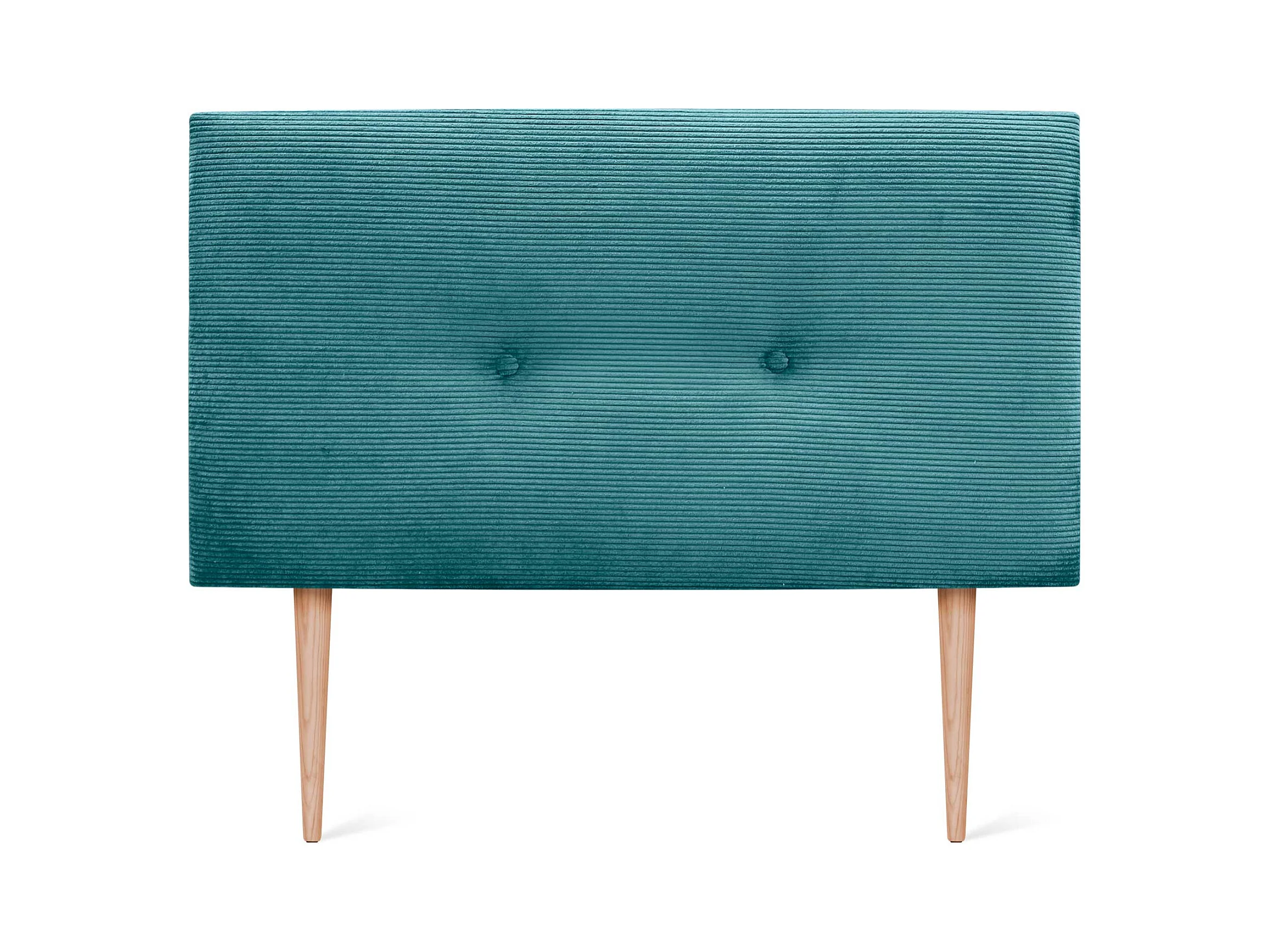 DHOME Tête de Lit Velours Côtelé Uni avec Boutons 95x115 avec Pieds de Lit 80/90 - Turquoise