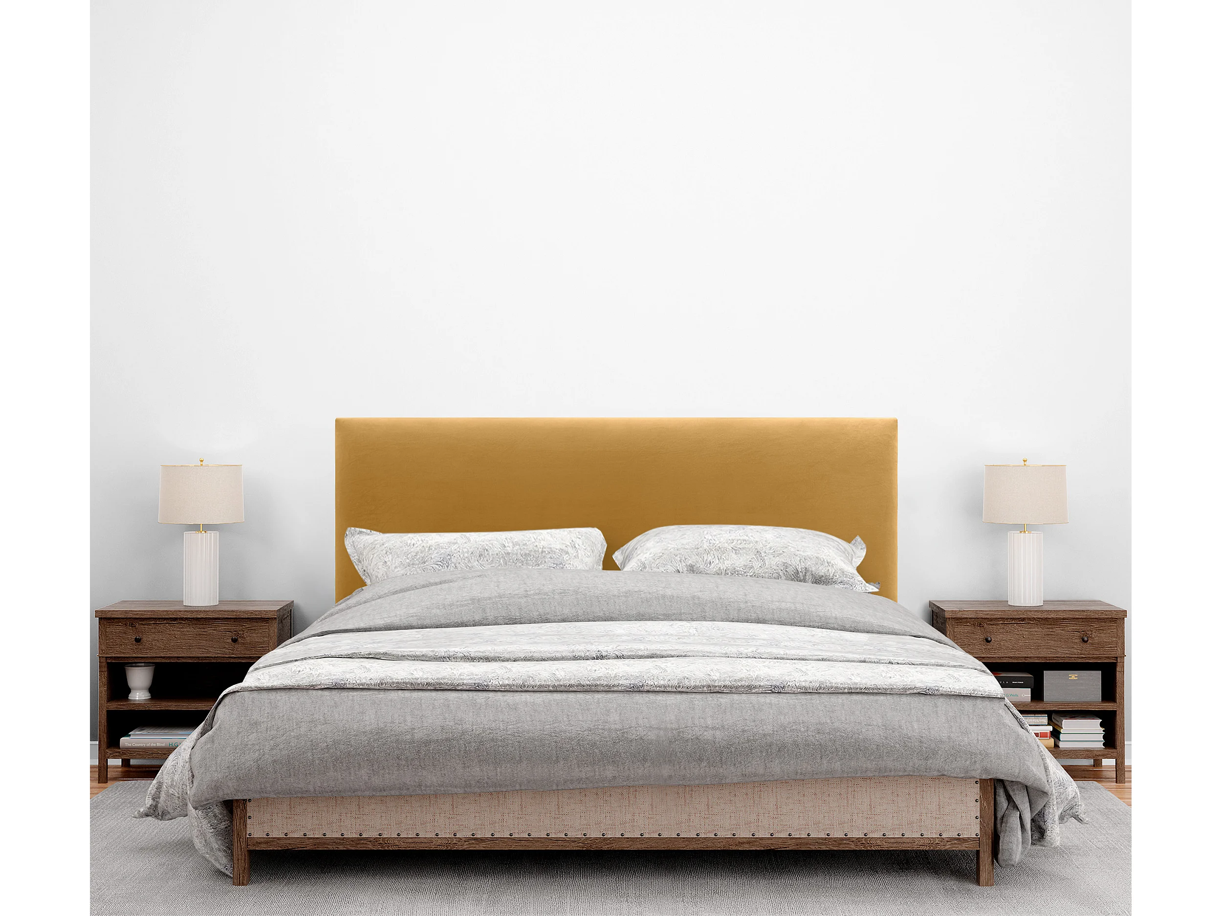 DHOME Tête de Lit Velours Lisse 135x60 Lits 120/135/140 - Moutarde