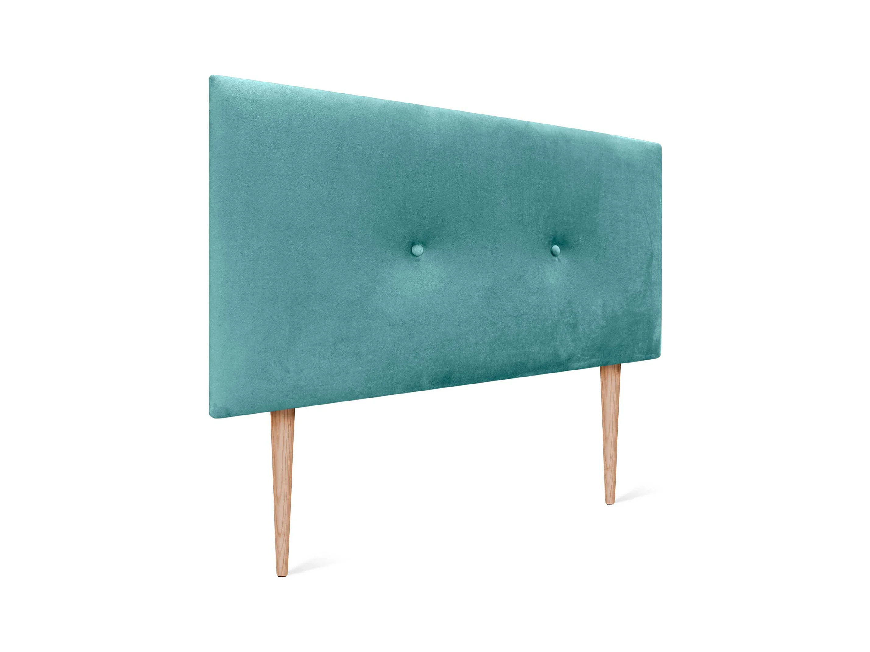 DHOME Tête de Lit Velours Lisse avec Boutons 110x105 avec Pieds de Lit 105 - Turquoise