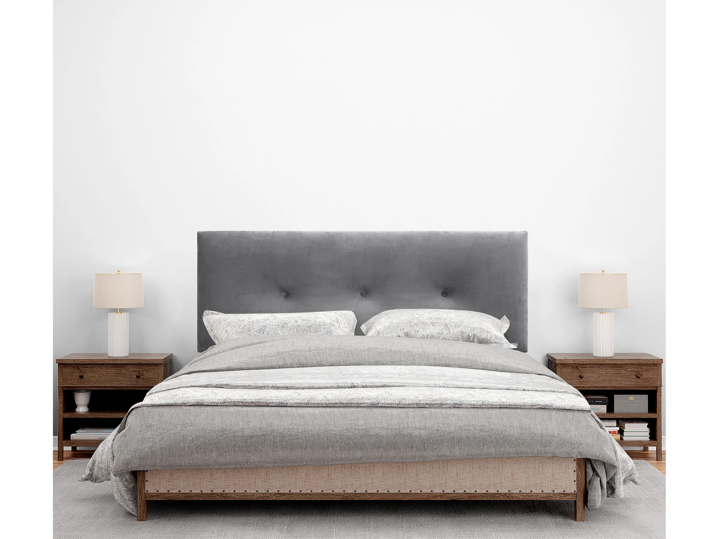 DHOME Tête delit Tapissée en velours de qualité supérieure composée de panneaux autocollants interchangeables pour chambre (gris cendré, 145 cm)