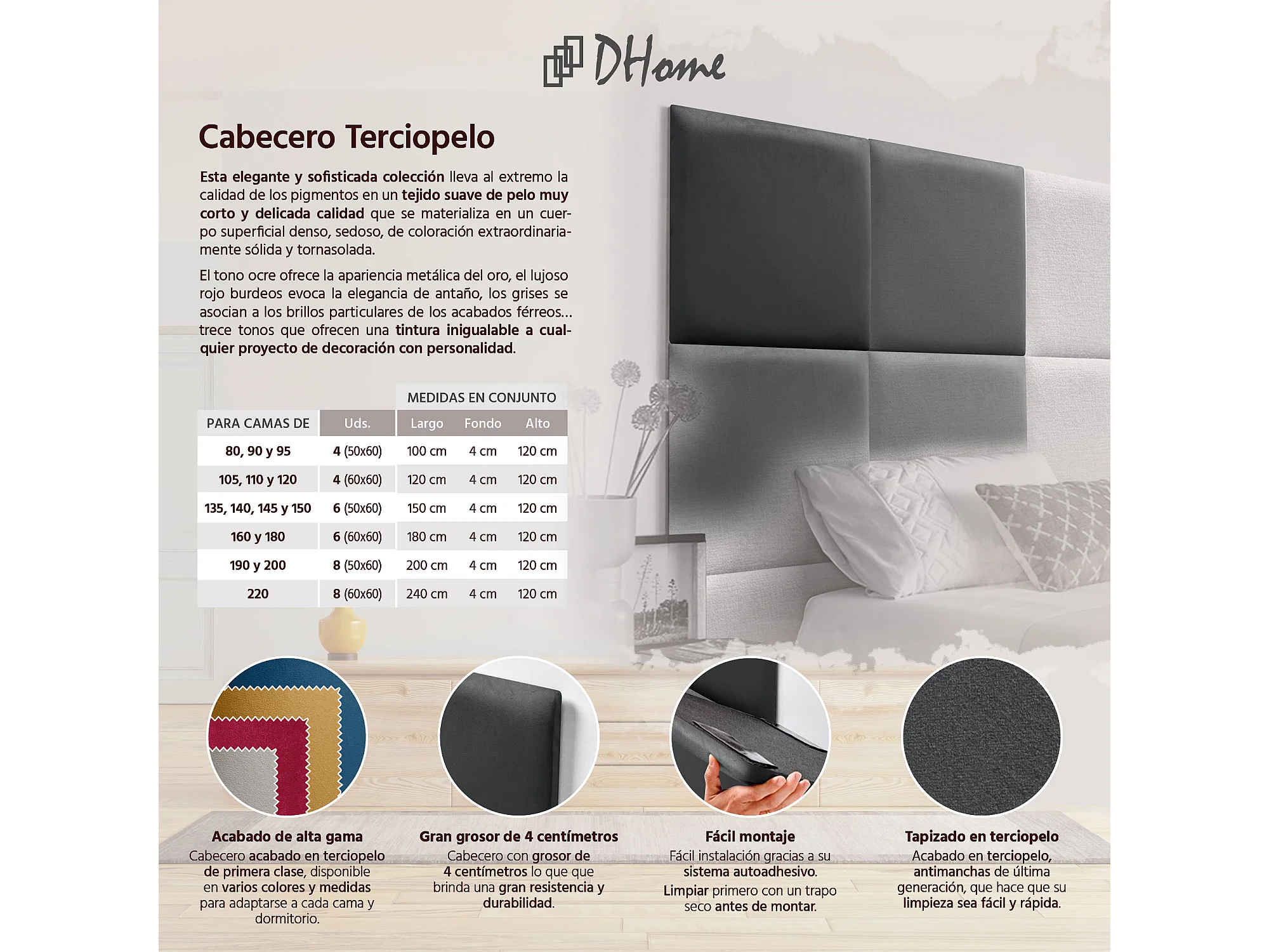 DHOME Tête delit Tapissée en velours de qualité supérieure composée de panneaux autocollants interchangeables pour chambre (gris foncé, 135 cm)