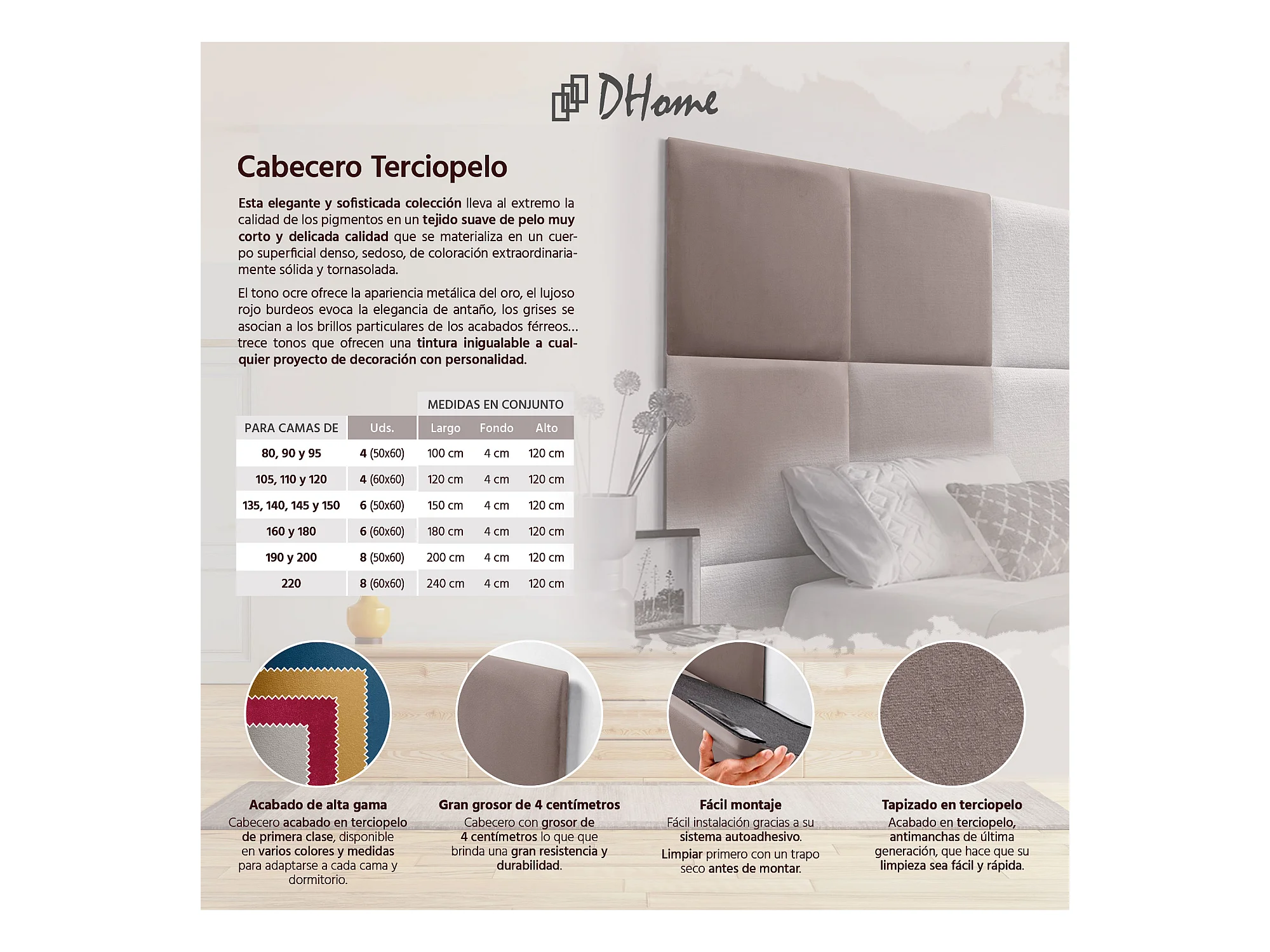 DHOME Tête delit Tapissée en velours de qualité supérieure composée de panneaux autocollants interchangeables pour chambre (marron, 200 cm)