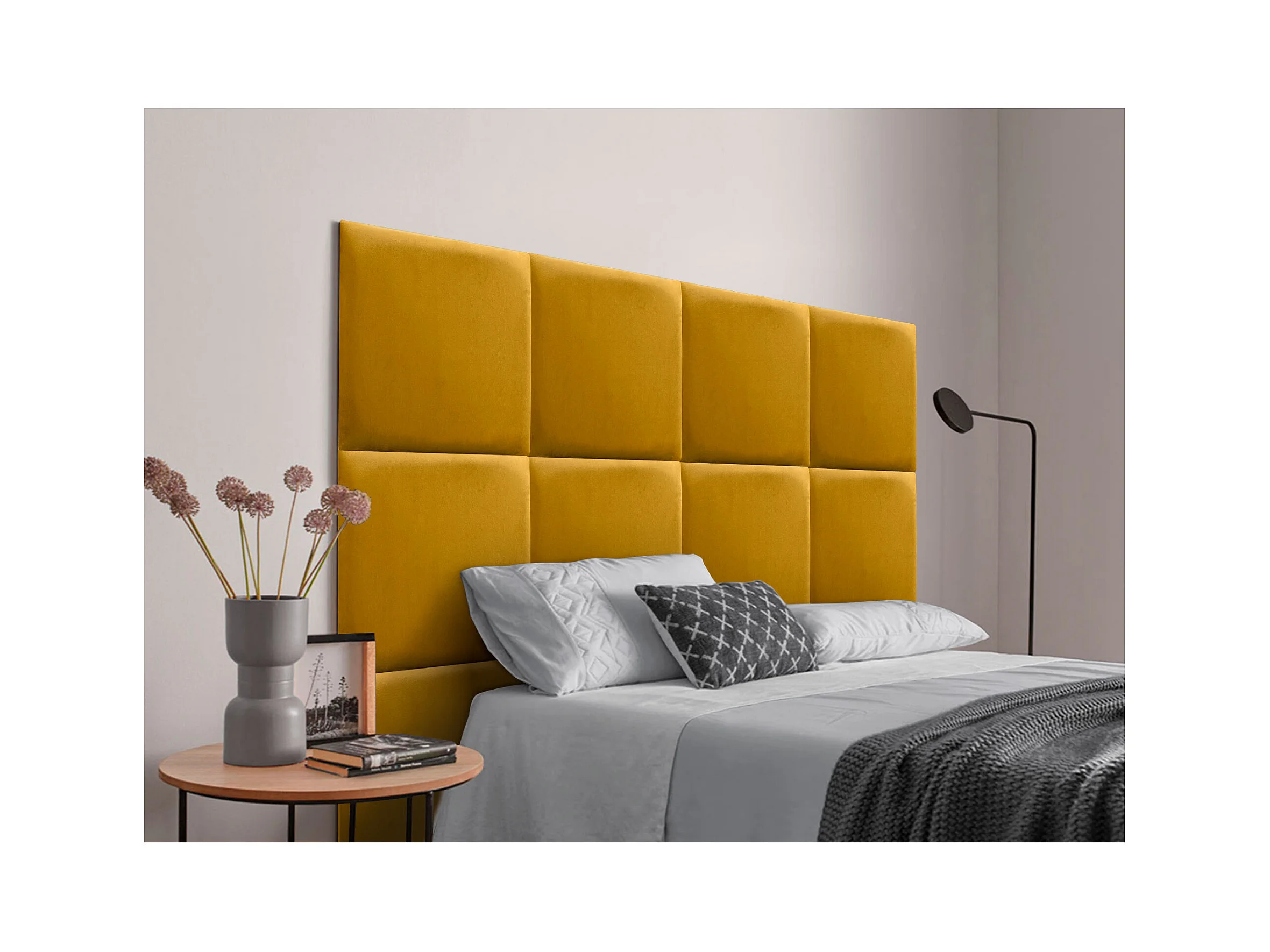 DHOME Tête delit Tapissée en velours de qualité supérieure composée de panneaux autocollants interchangeables pour chambre (moutarde, 200 cm)
