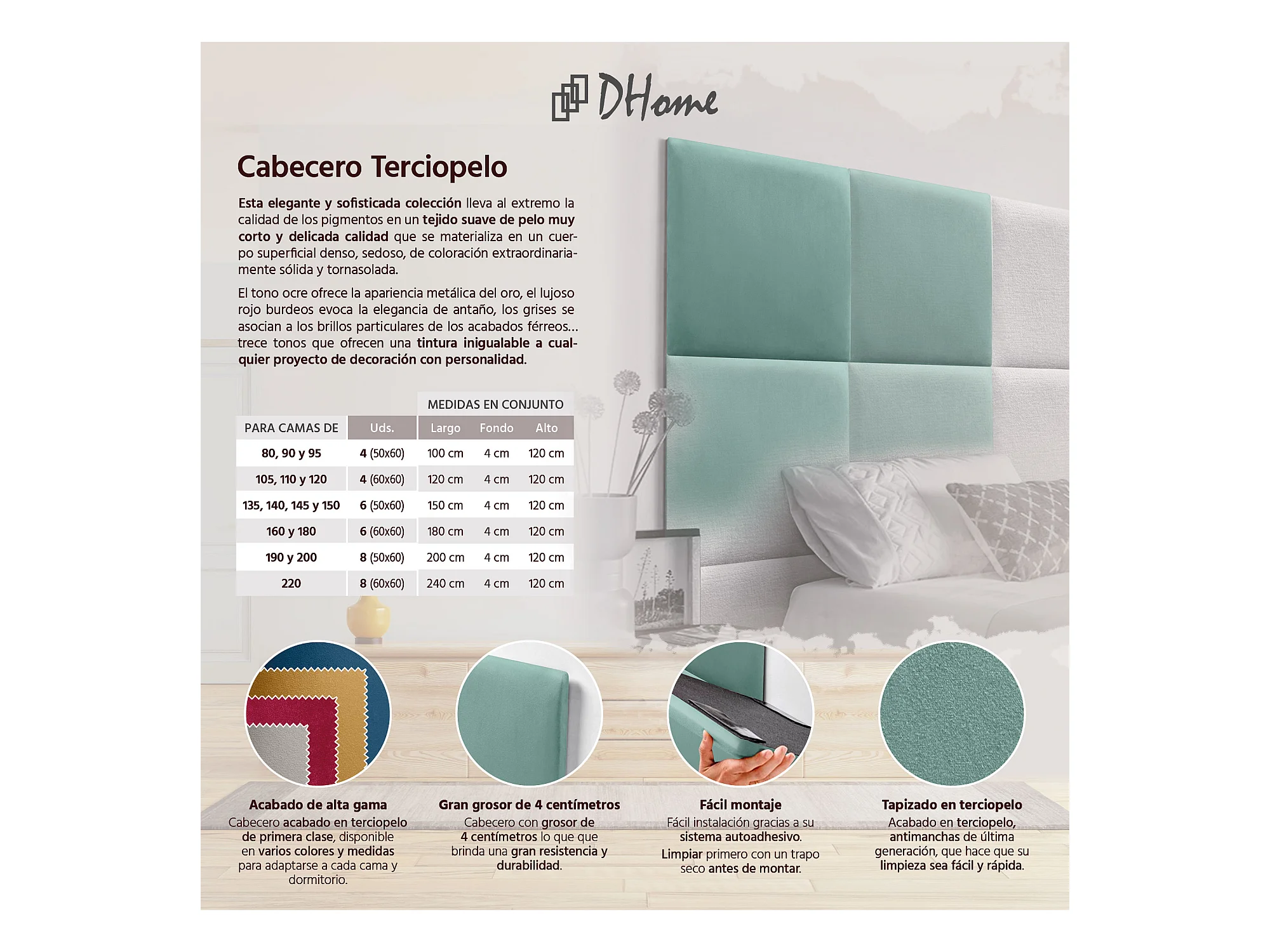 DHOME Tête delit Tapissée en velours de qualité supérieure composée de panneaux autocollants interchangeables pour chambre (turquoise, 140 cm)
