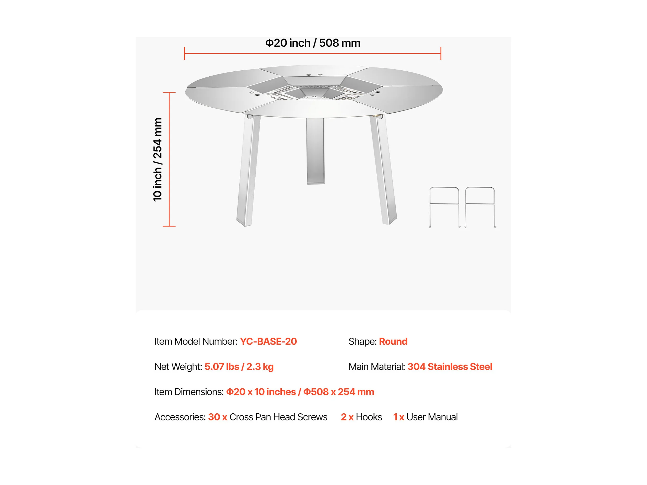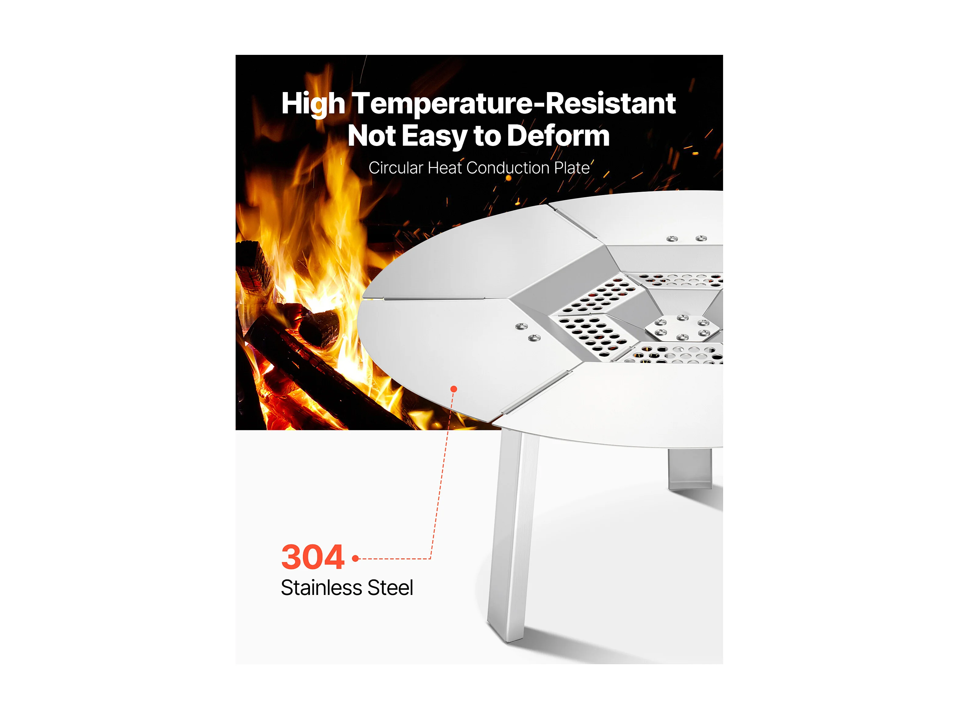 Diffuseur de Chaleur SucceBuy, 50.8x25.4 cm Protection Thermique Ronde, Diffuseur de Chaleur en Acier Inoxydable 304 avec Couvercle de Brûleur Amovible