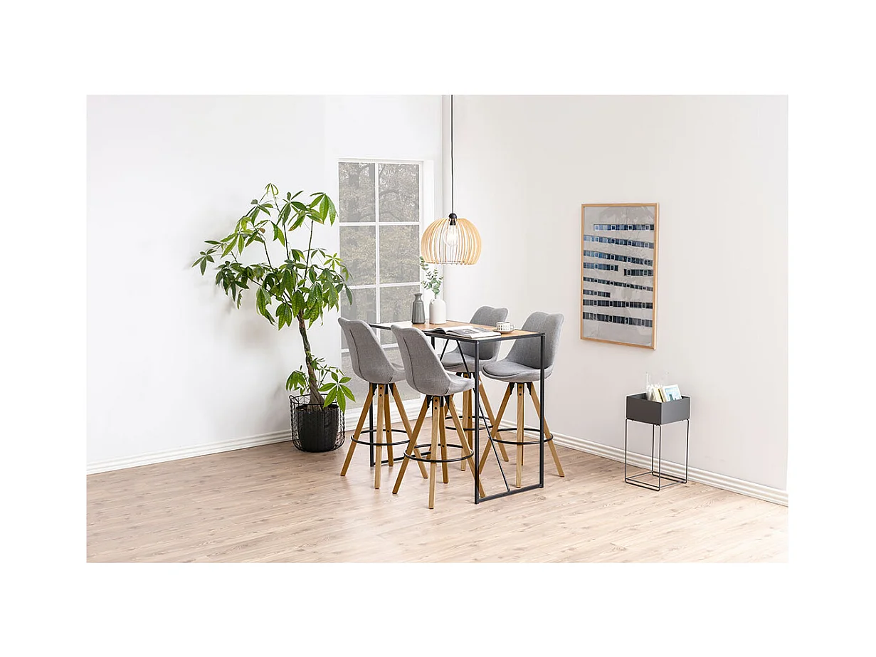 Tabouret de bar tissu gris et pieds métal noir Rava