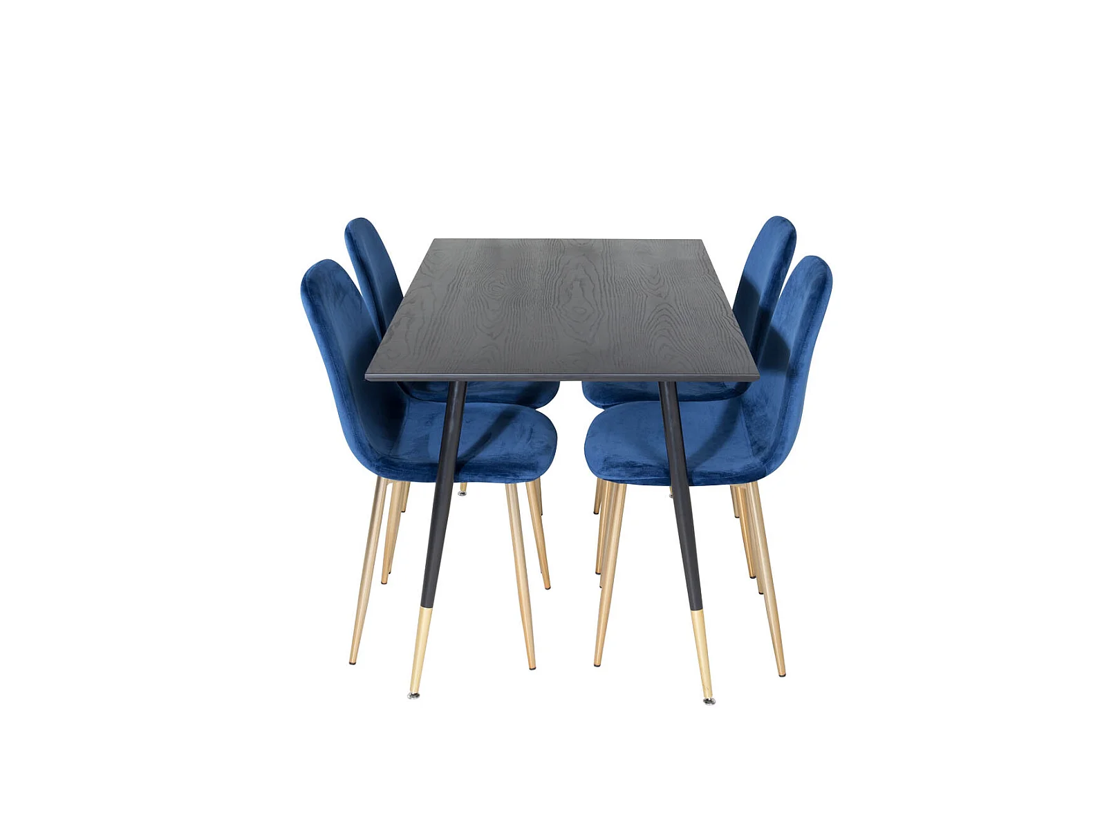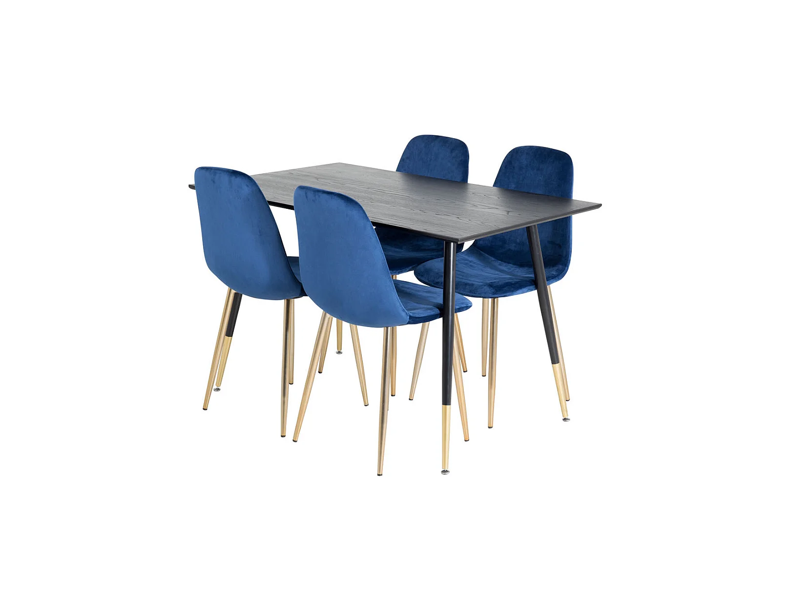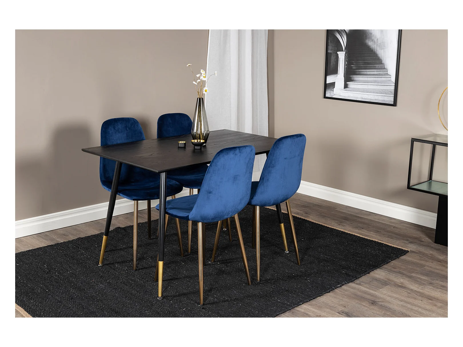 Dipp120x85BLBR ensemble table, table noir et 4 Polar chaises Velours bleu, laiton décor.