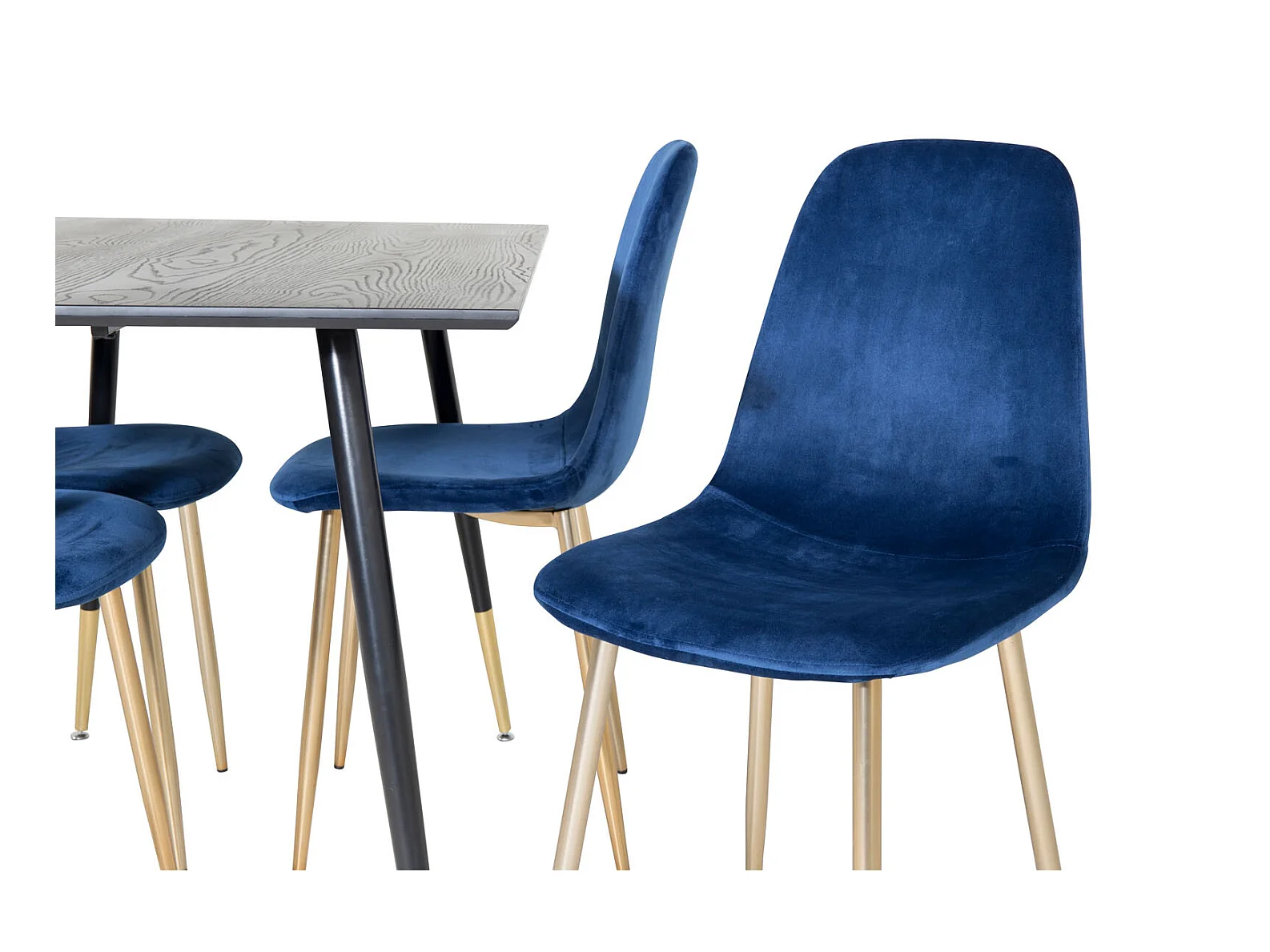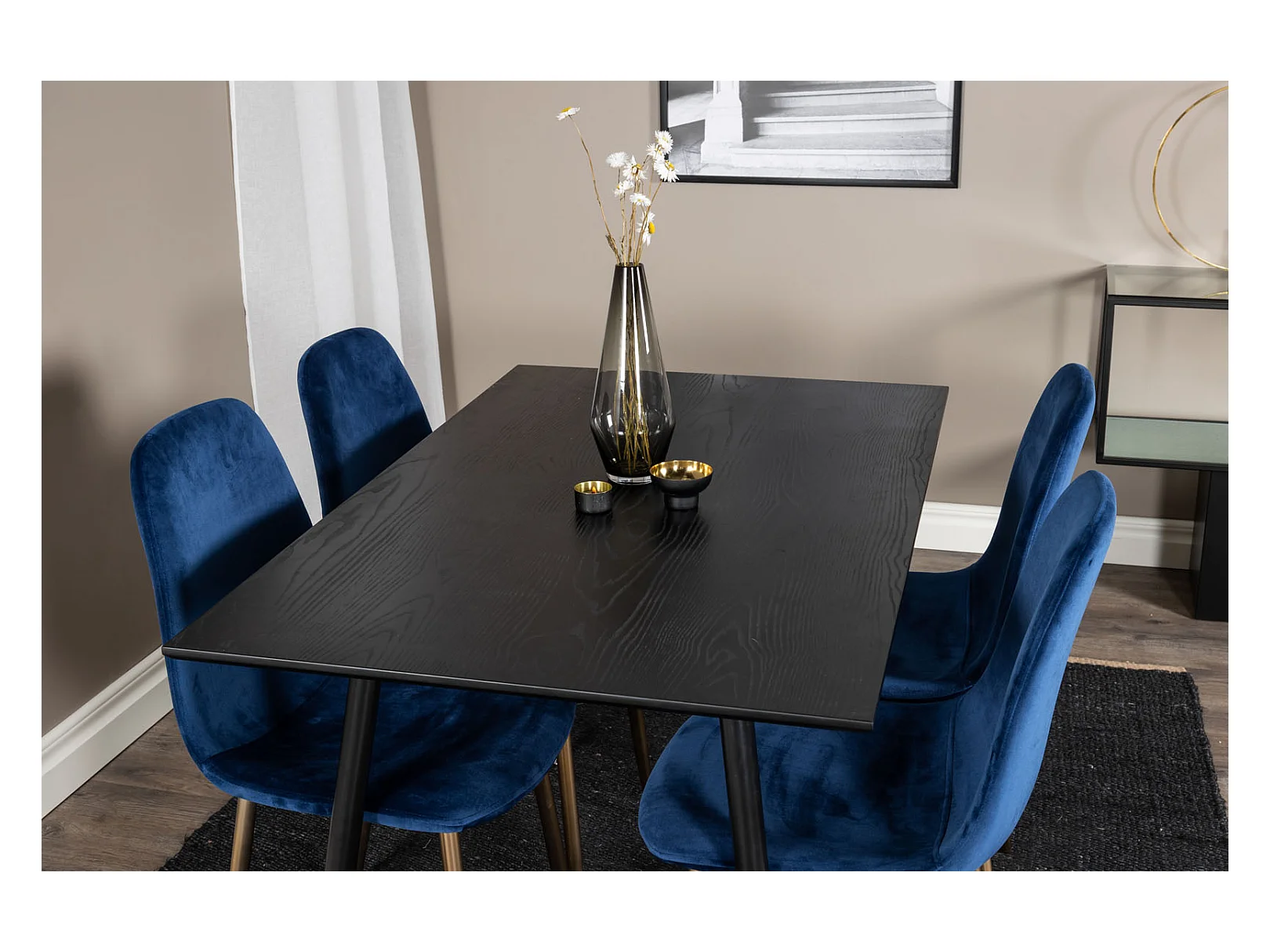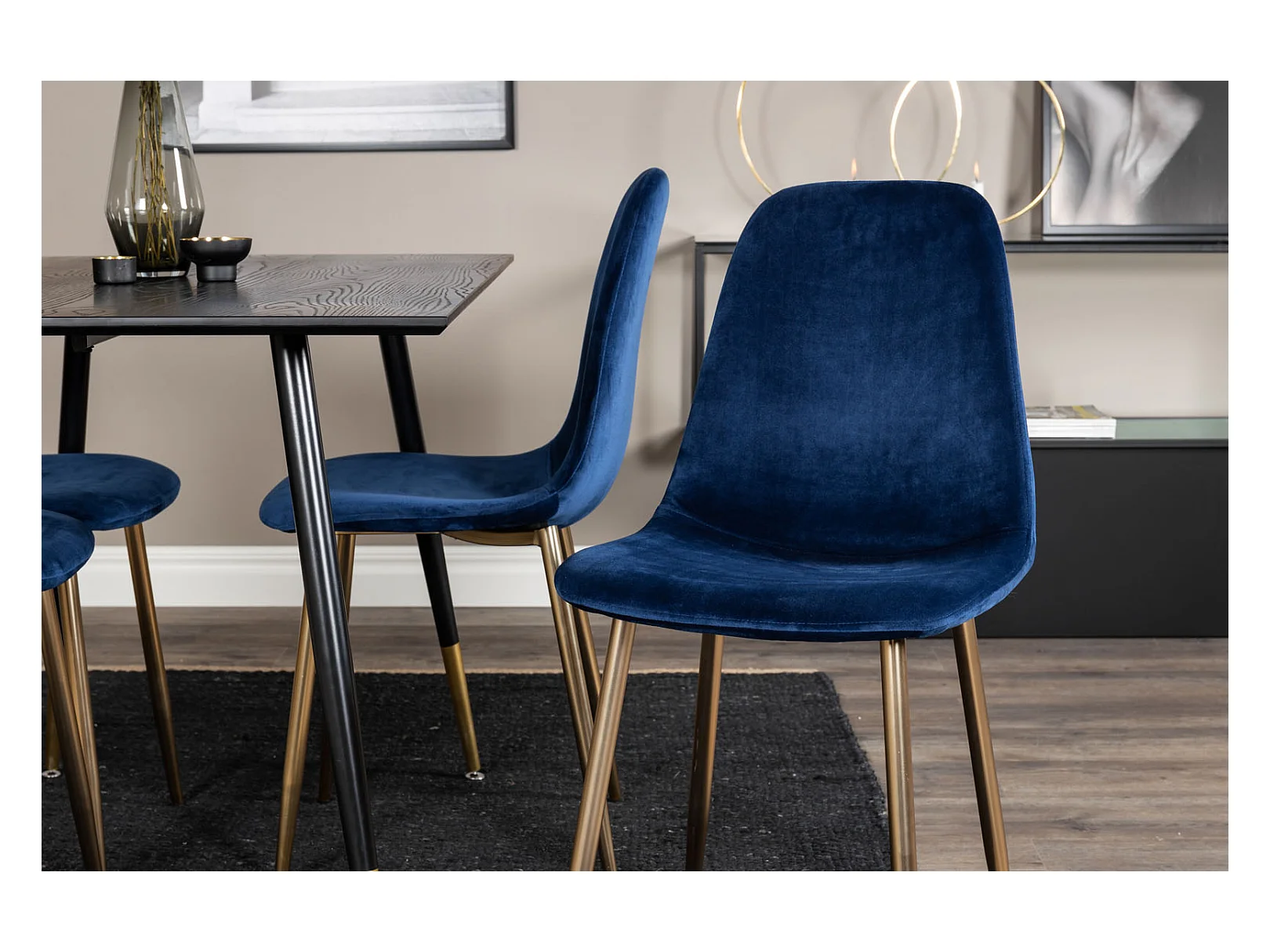 Dipp120x85BLBR ensemble table, table noir et 4 Polar chaises Velours bleu, laiton décor.