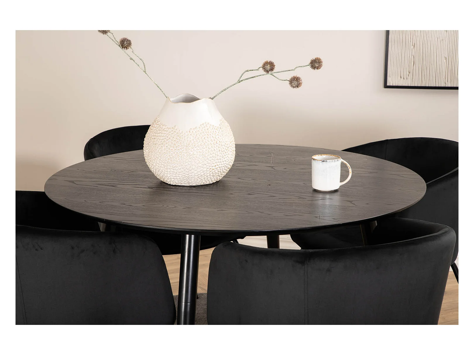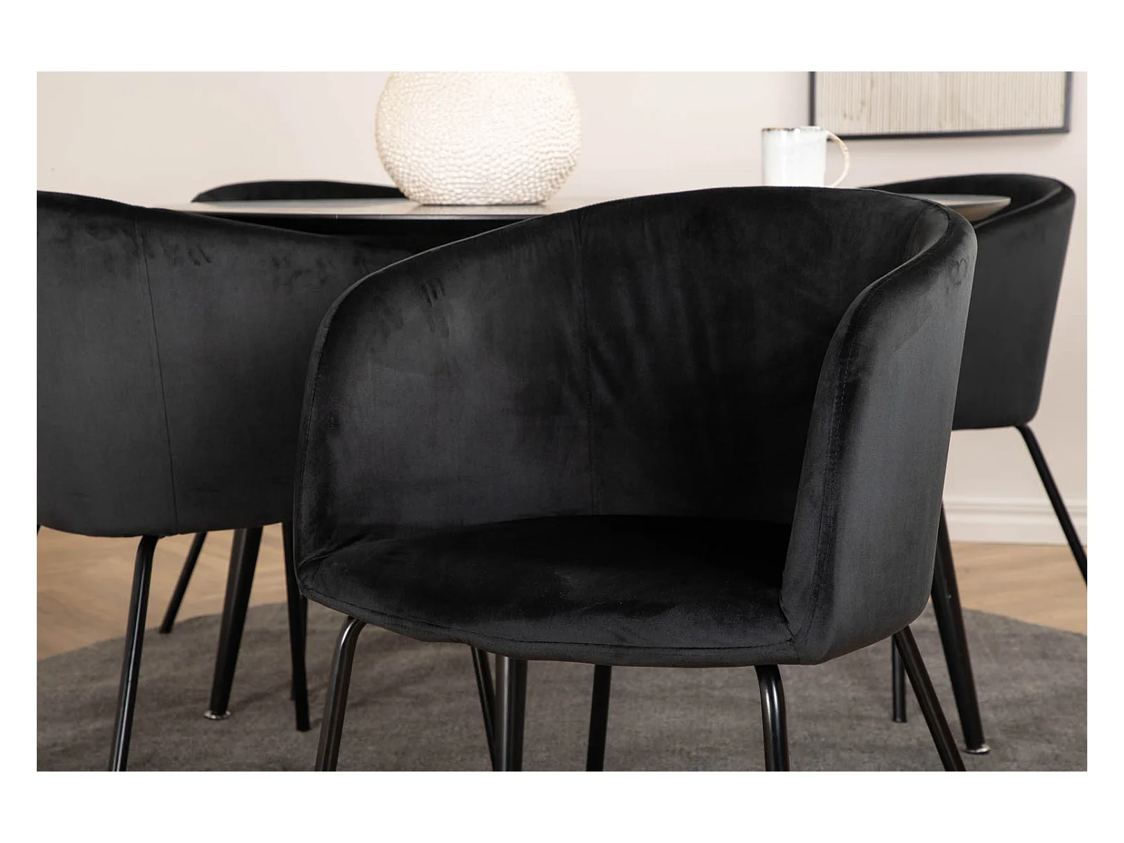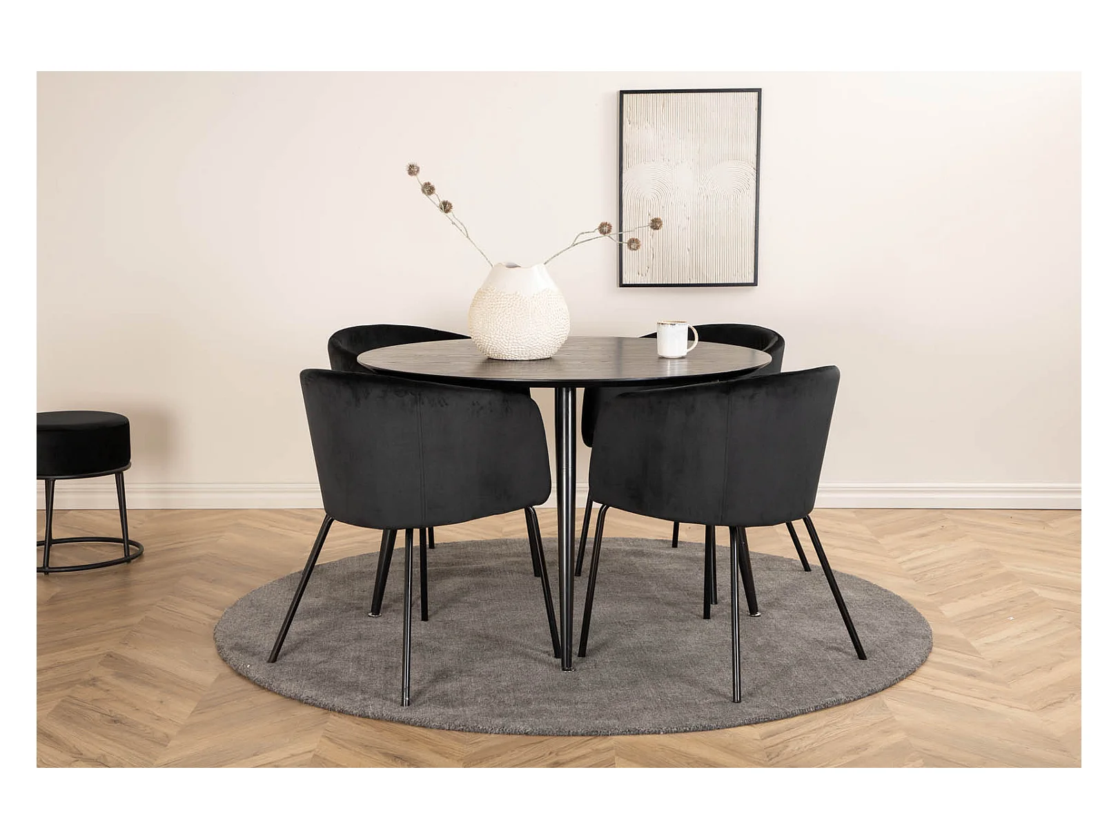 DippØ115BLBL ensemble table, table noir et 4 Windu Lyx chaises Velours noir.