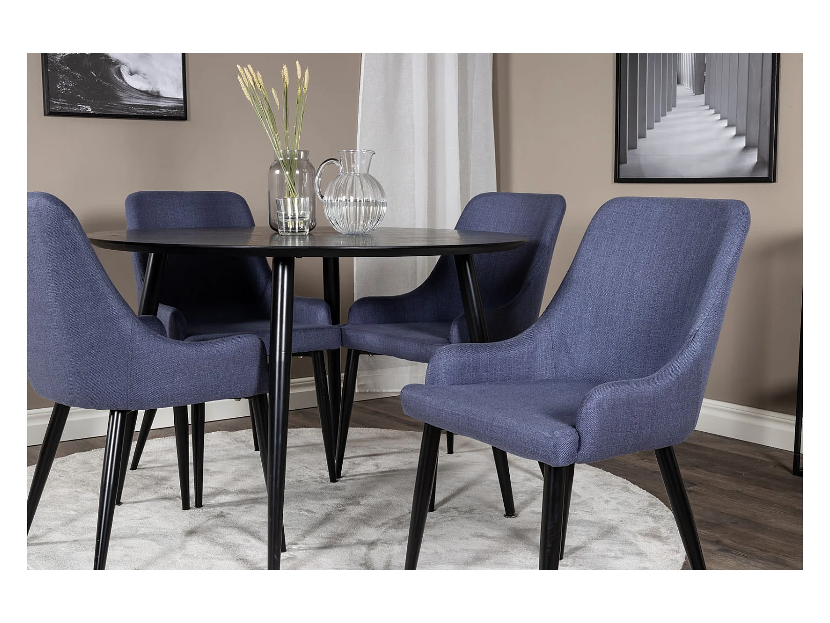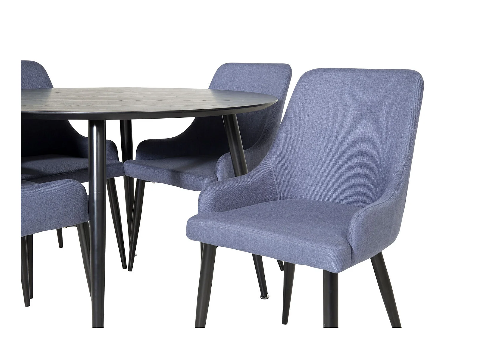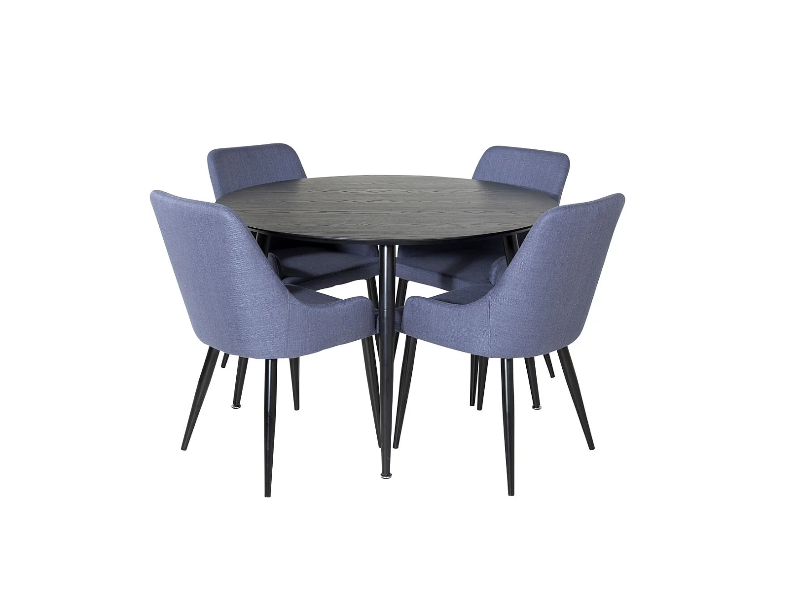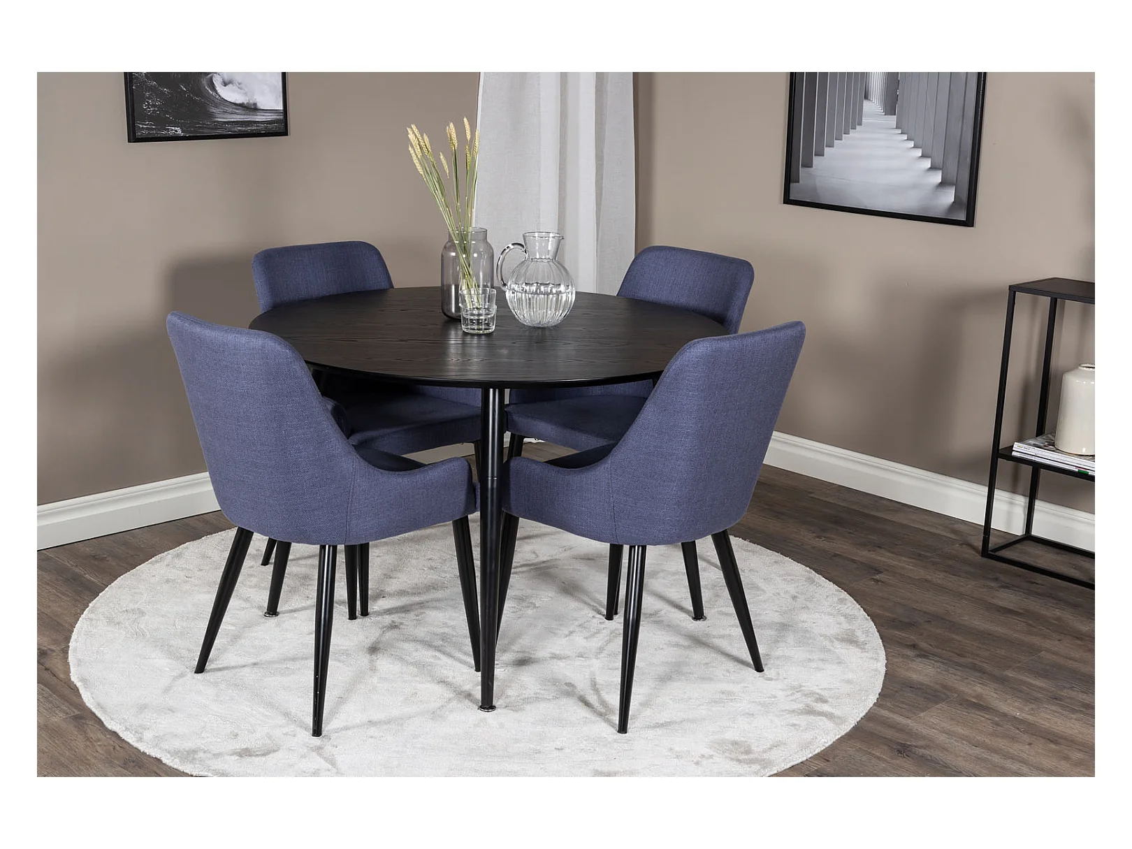 DippØ115BLBL ensemble table, table noir et 4 Plaza chaises bleu, noir.