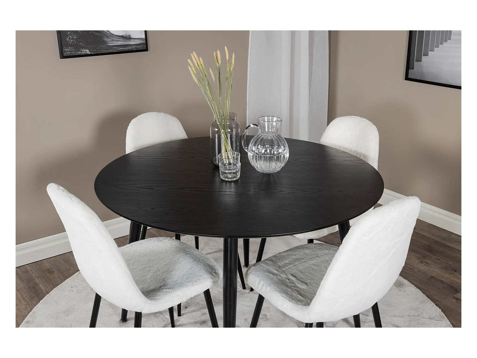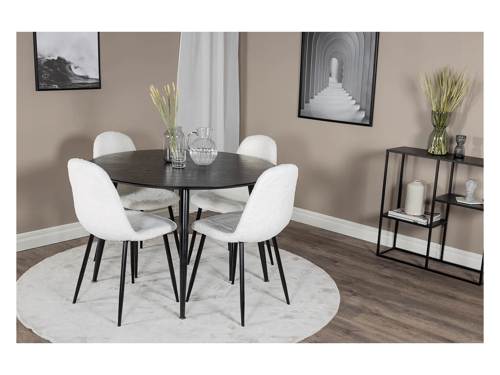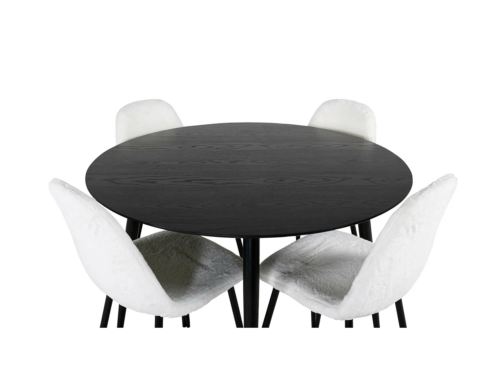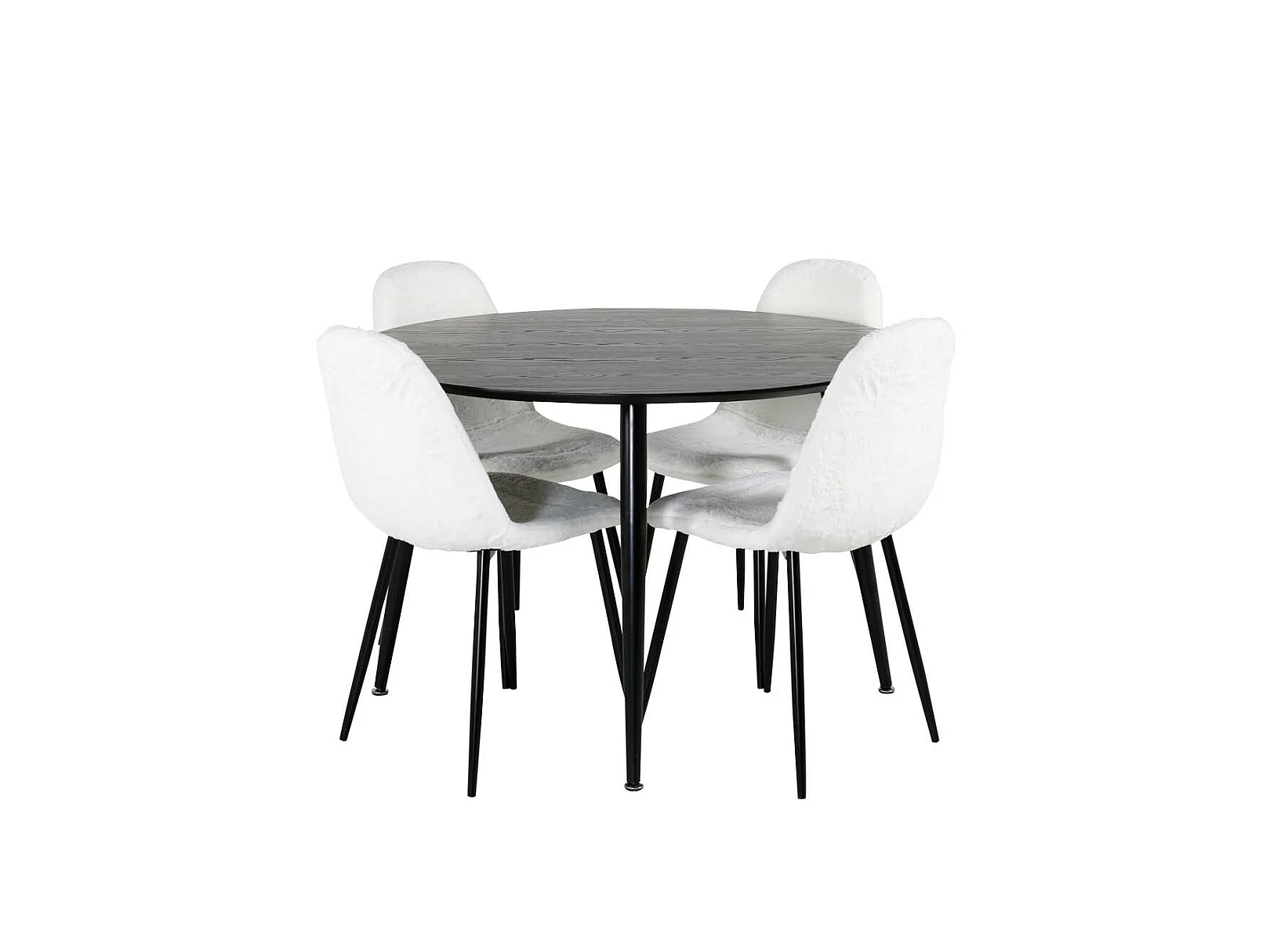 DippØ115BLBL ensemble table, table noir et 4 Polar Fluff chaises Teddy blanc.