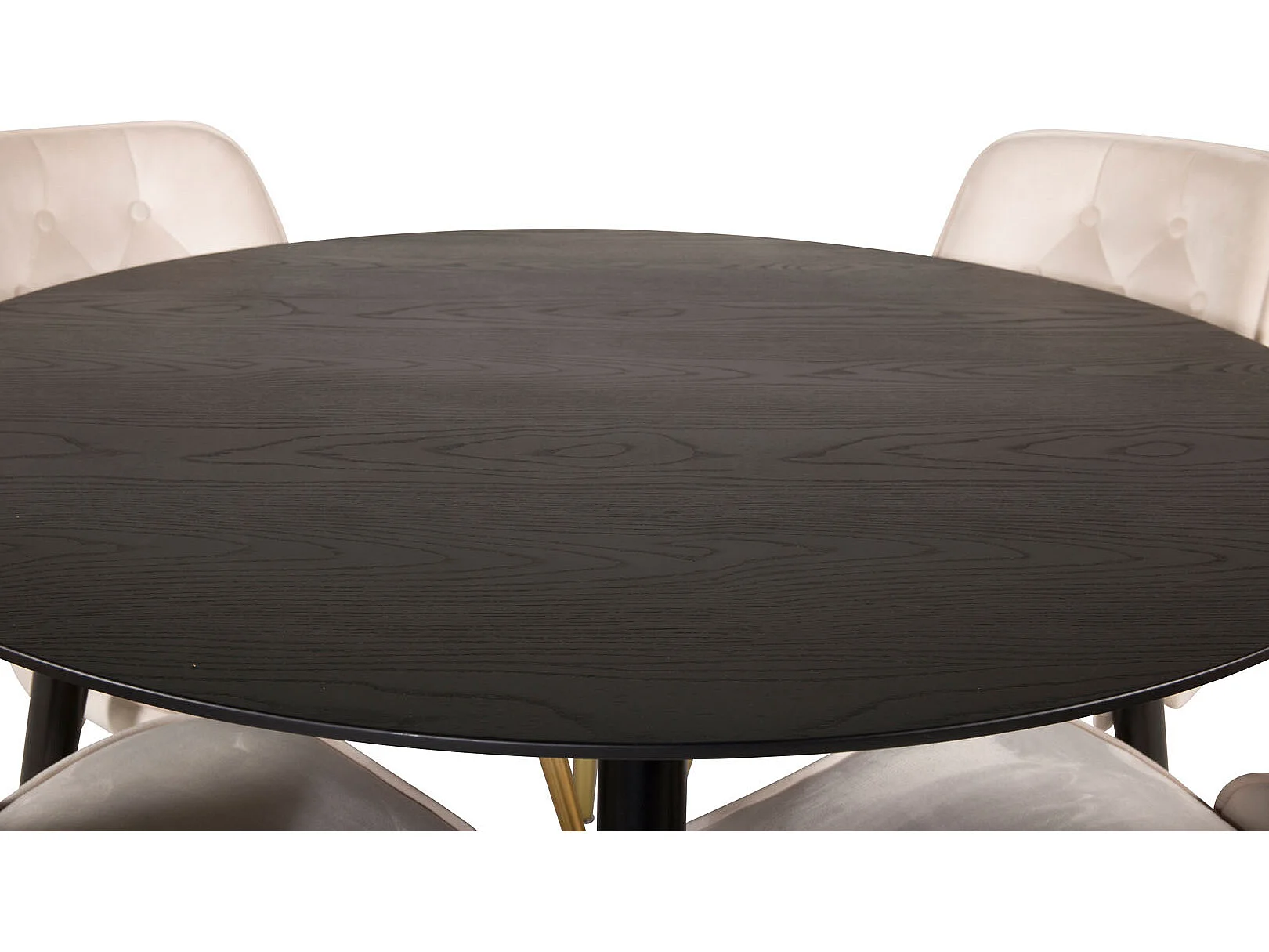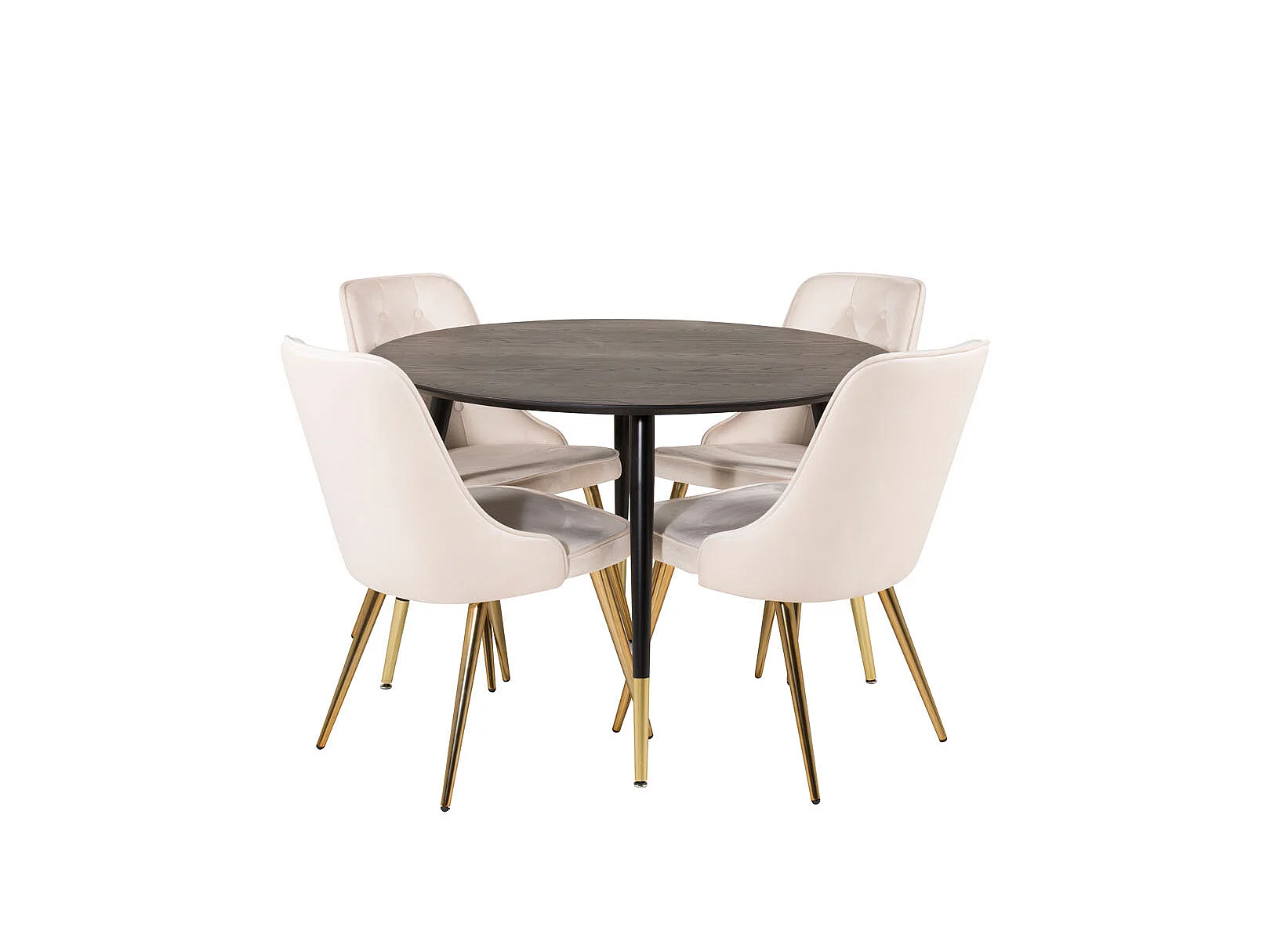 DippØ115BLBL ensemble table, table noir et 4 Velvet Stitches chaises beige.