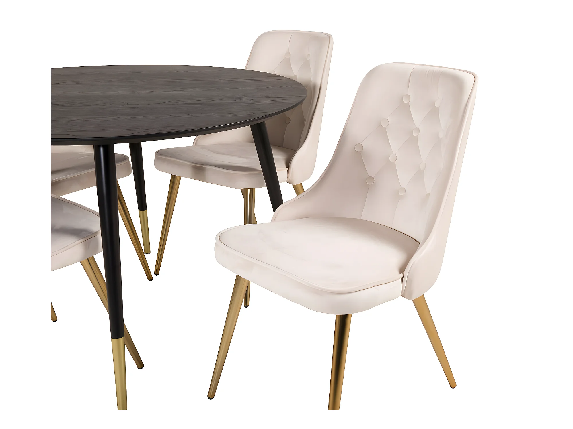 DippØ115BLBR ensemble table, table noir et 4 Velvet Deluxe chaises Velours beige, laiton décor.