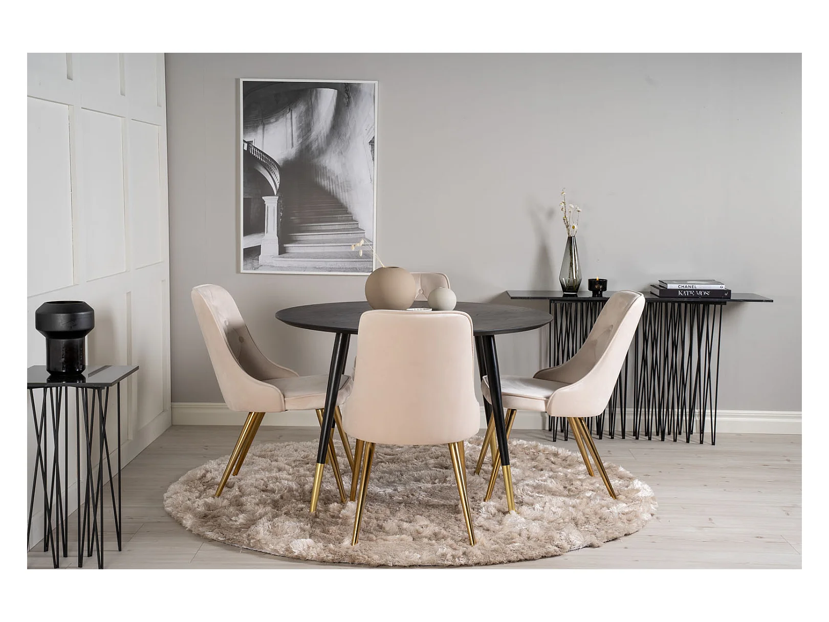 EstelleØ106BLBR ensemble table, table noir, marbre et 4 Velvet Deluxe chaises Velours beige, laiton décor.