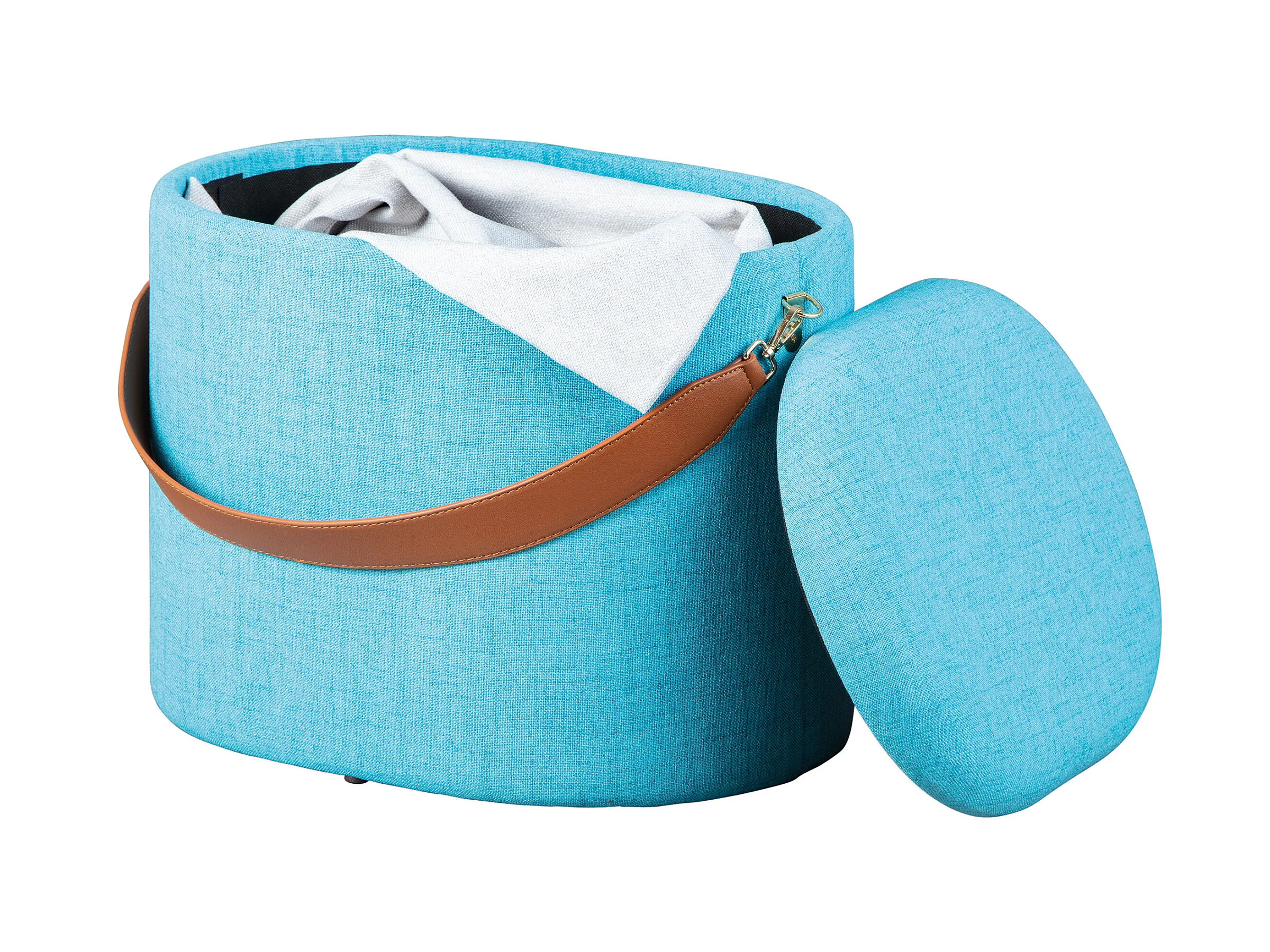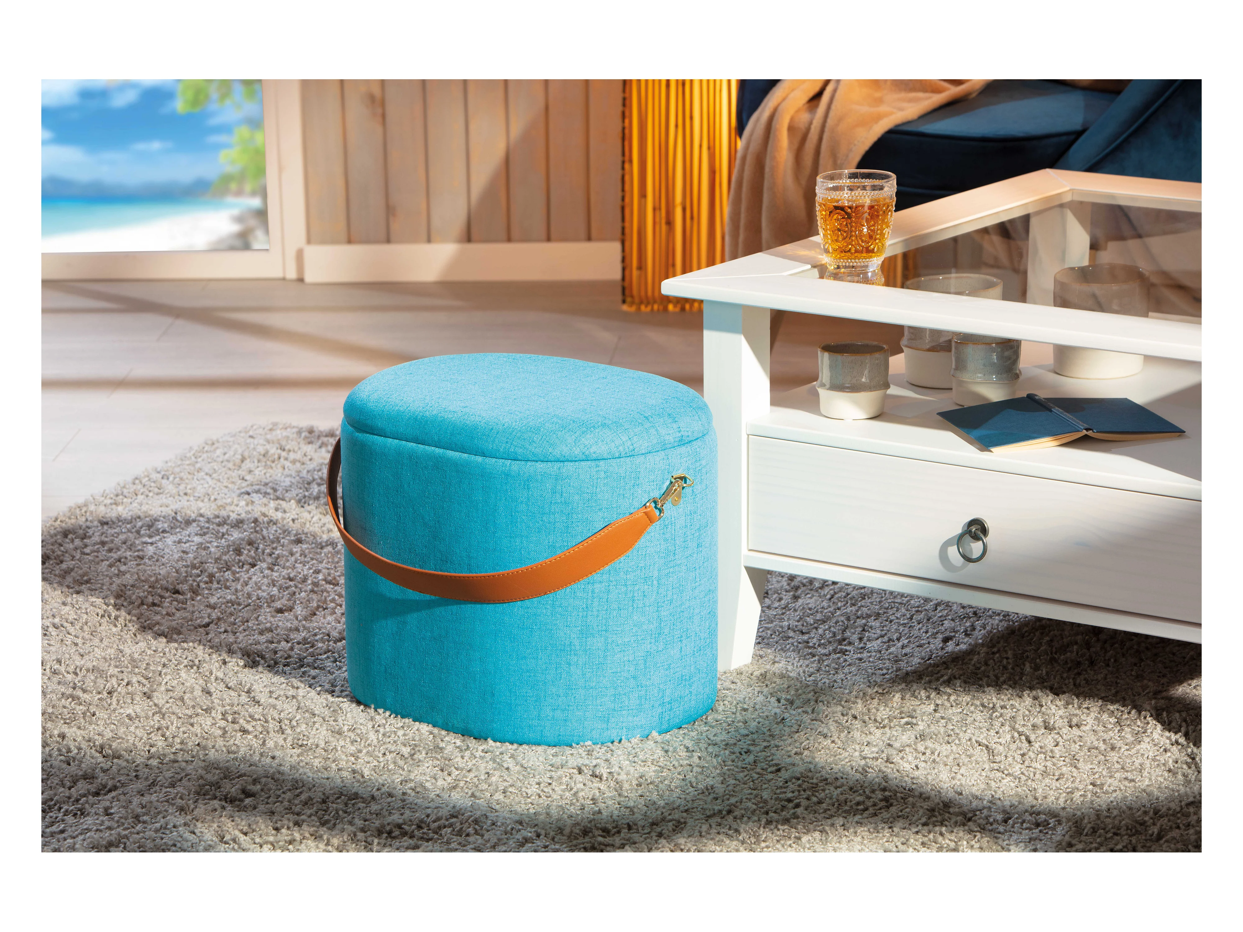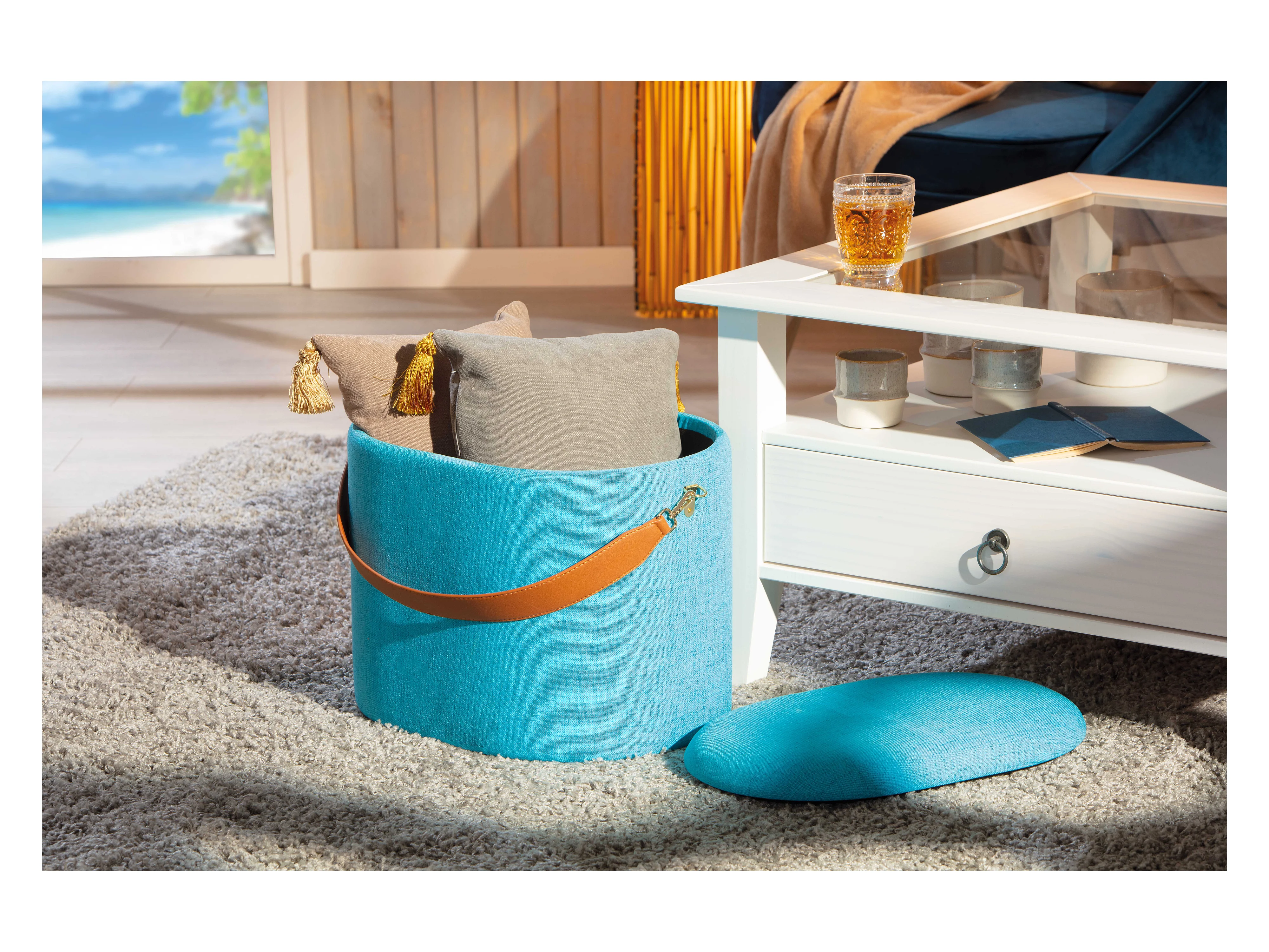 Pampurs Repose-pieds/Tabouret avec compartiment de rangement, bleu et marron.