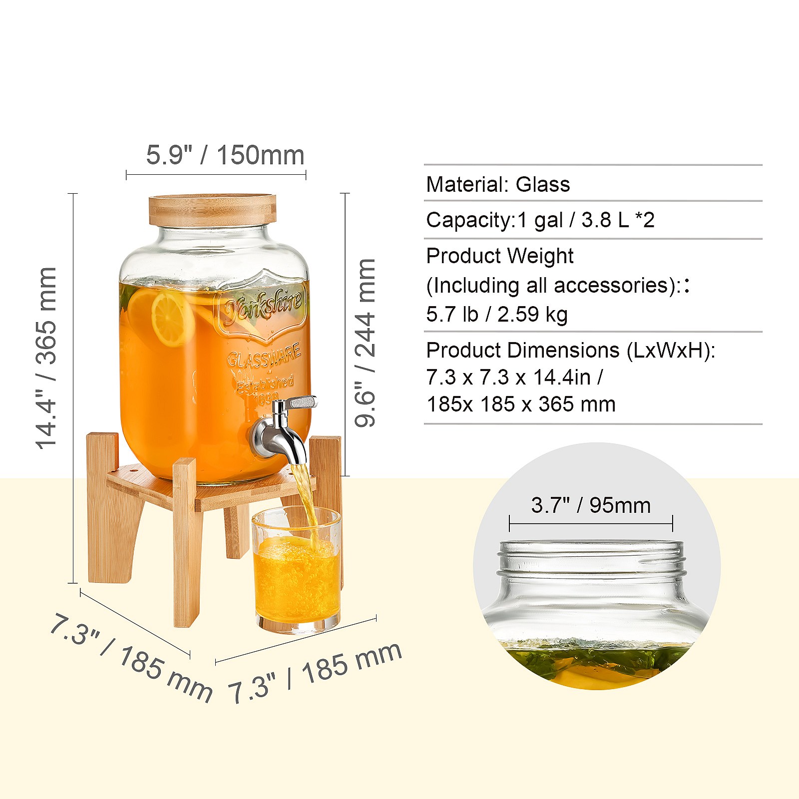 Distributeur de Boisson SucceBuy Distributeur de Boissons 3.8 L pour Fêtes, Verre, Support