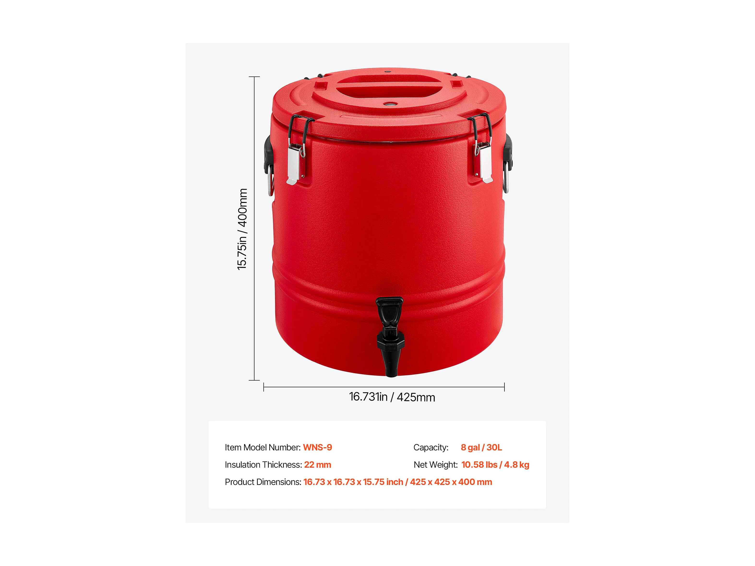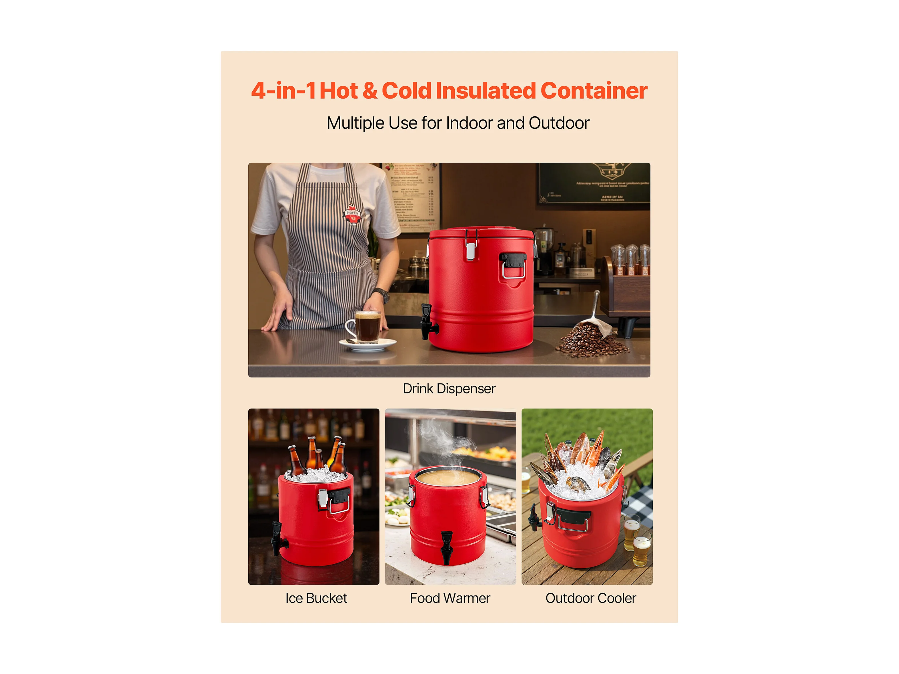 Distributeur de Boissons SucceBuy Isotherme 30 L, Fontaine à Eau Chaude et Froide Non Électrique avec Robinet, Conteneur Isotherme de Qualité Alimentaire