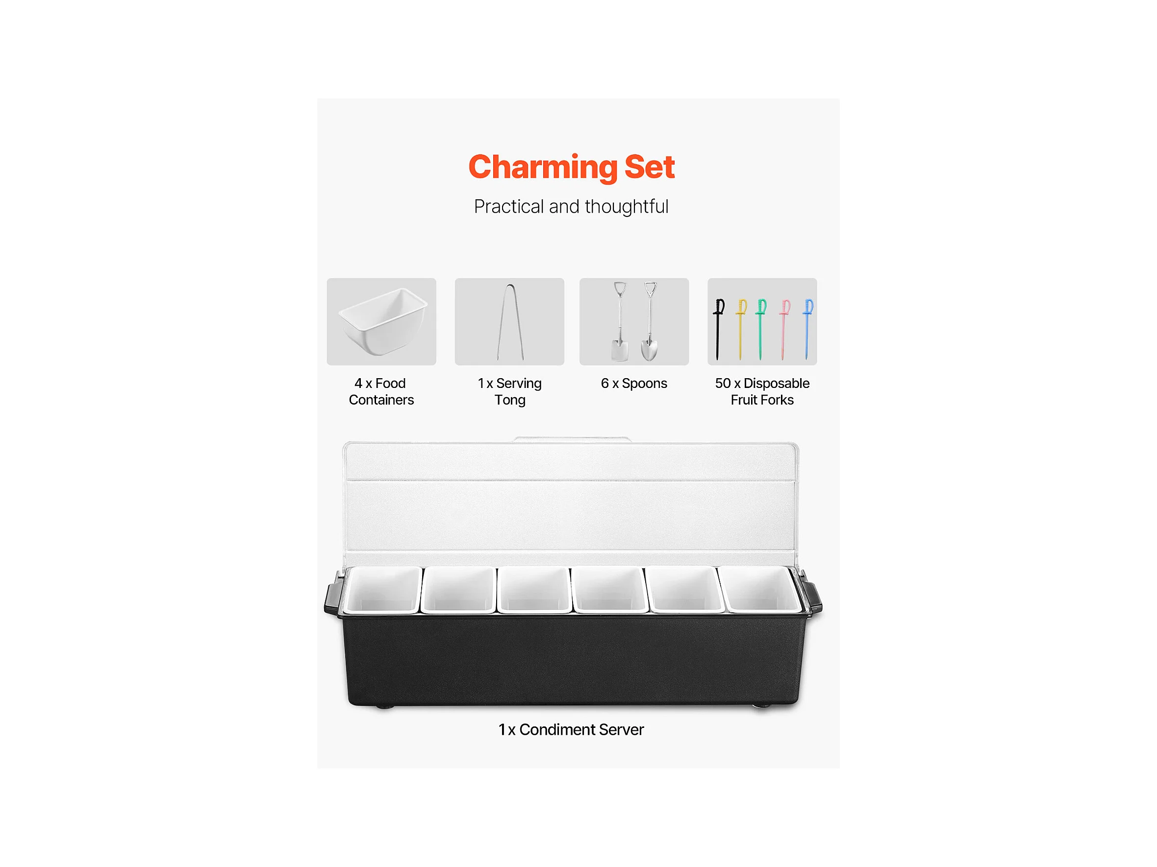 Distributeur d'Épices Réfrigéré SucceBuy, avec 6 Compartiments et Couvercle, 50,3x16,5x11,7 cm