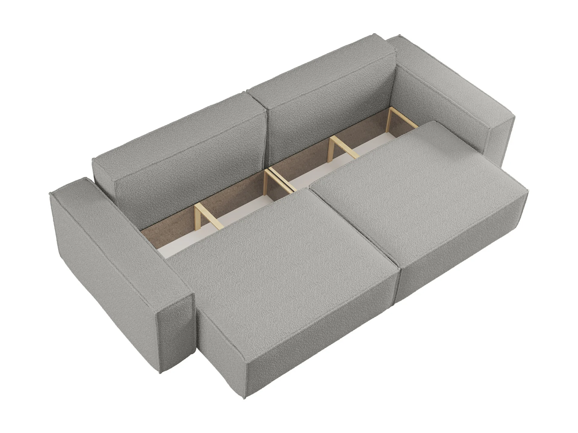 Divano Karl avec deux coffres de rangement pour literie, pour le salon, grand choix directement du fabricant tissu bouclé gris clair - VINOTTI